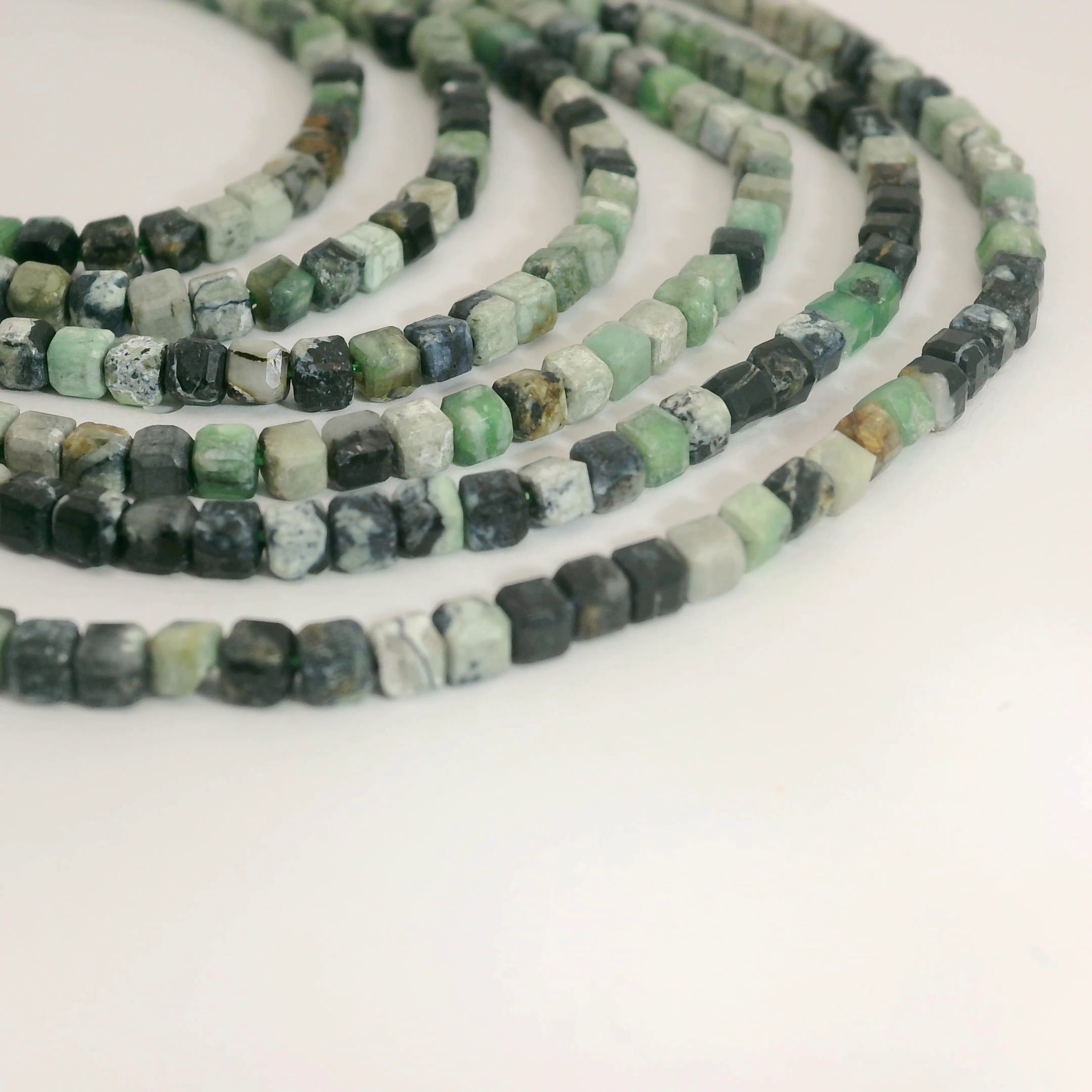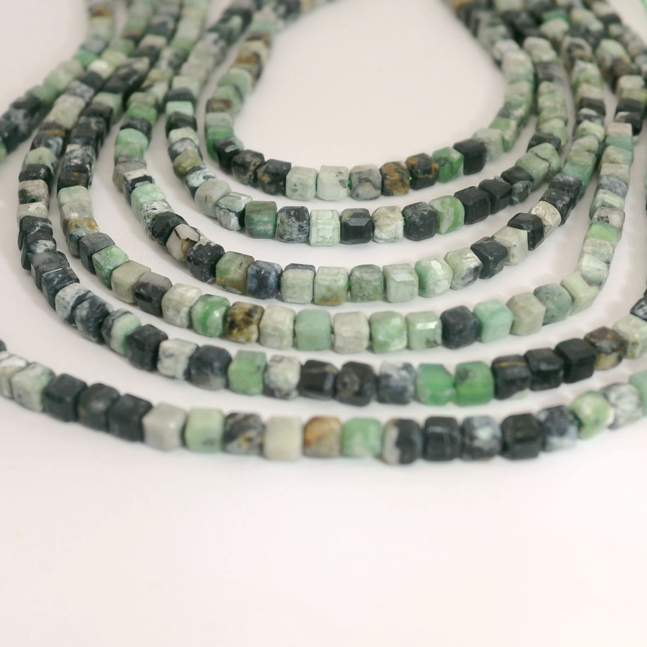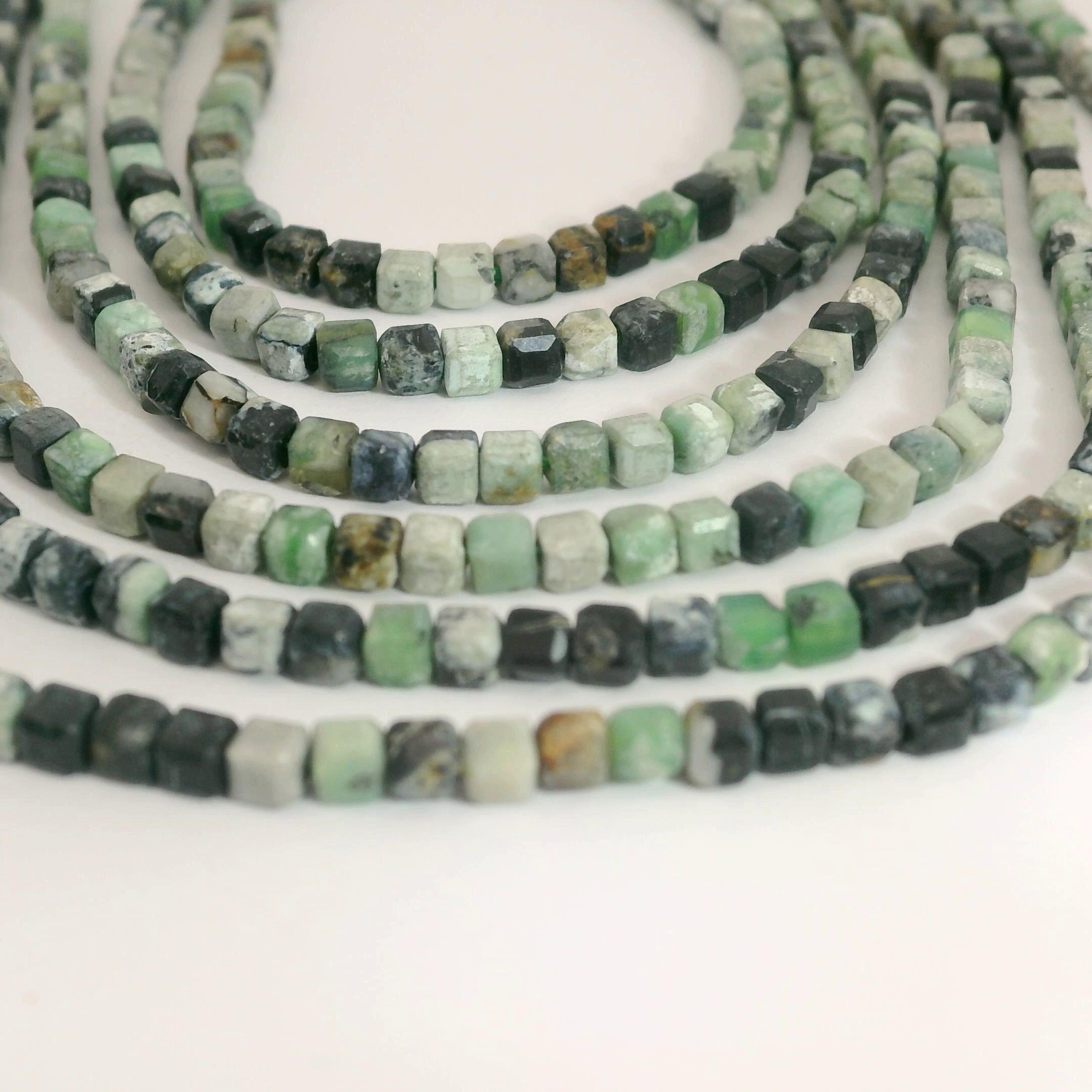 Produktinformationen "Variscit Perlenstrang 2,5 x 2,5 x 2,5 mm Würfel (ca. 150 Perlen / ca. 38 cm Länge)"