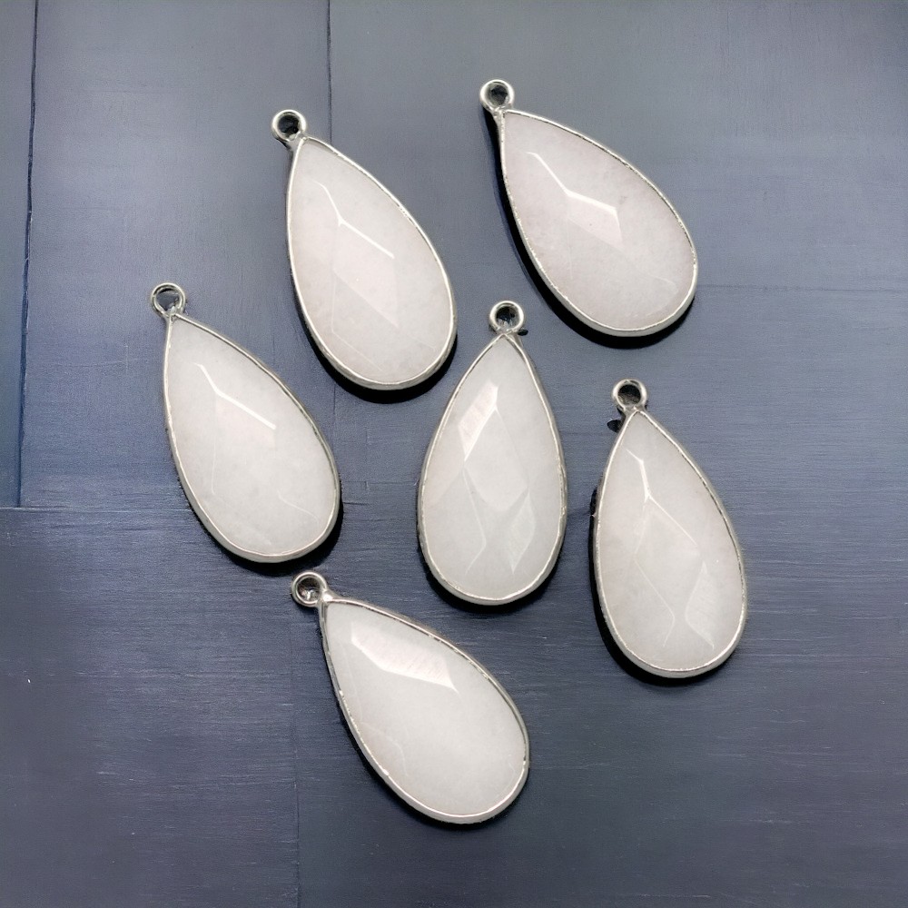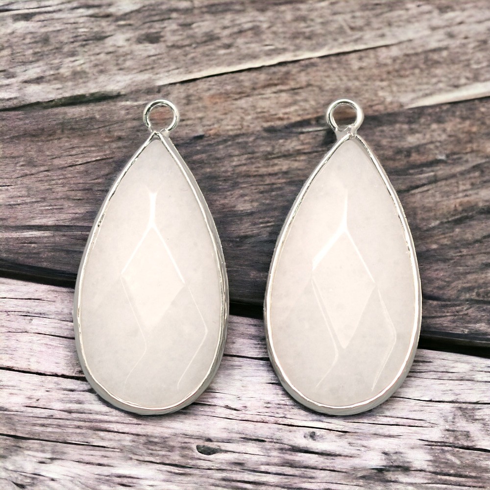 Weißer Jade Anhänger mit platinfarbener Metalleinfassung 33 x 16 x 6 mm
