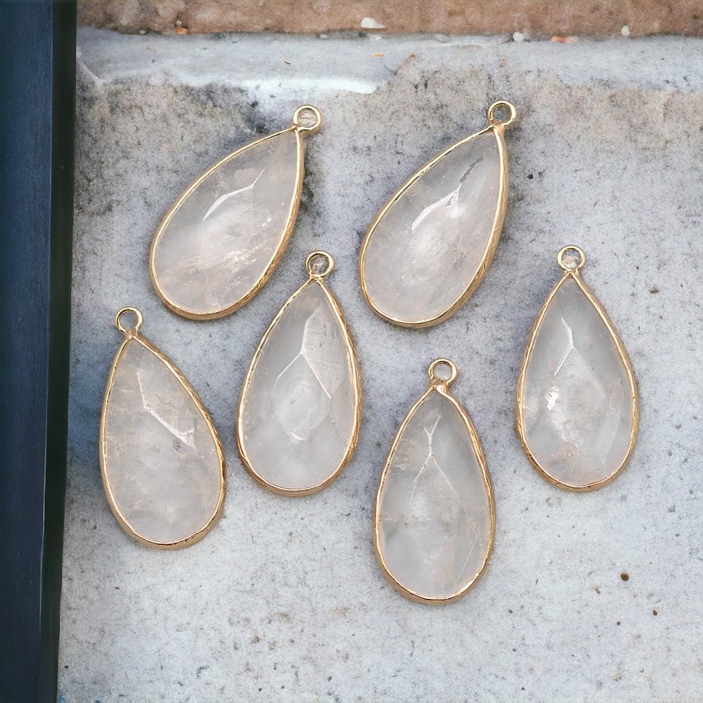 Weißer Naturquarz Anhänger mit goldfarbener Metalleinfassung 33 x 16 x 6 mm