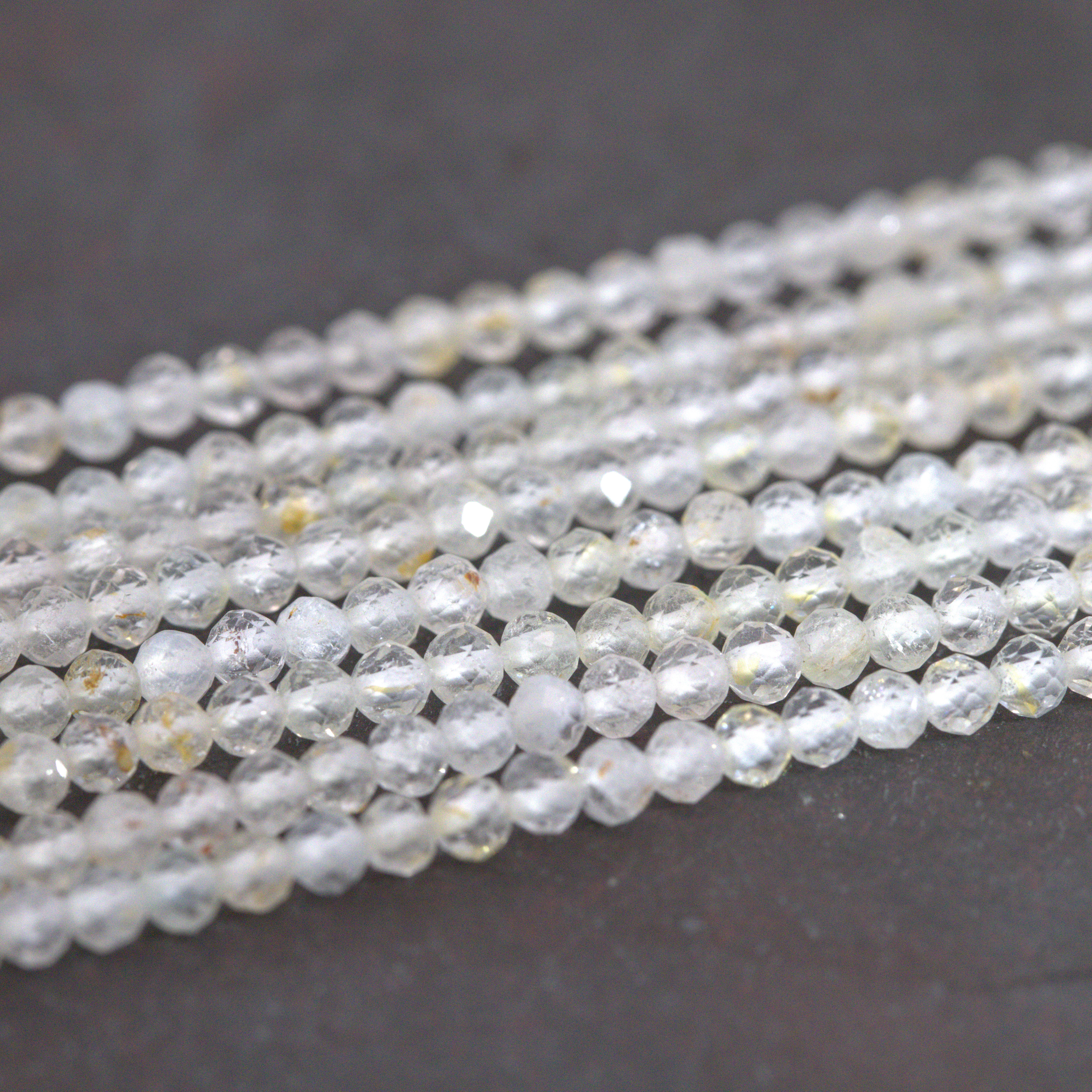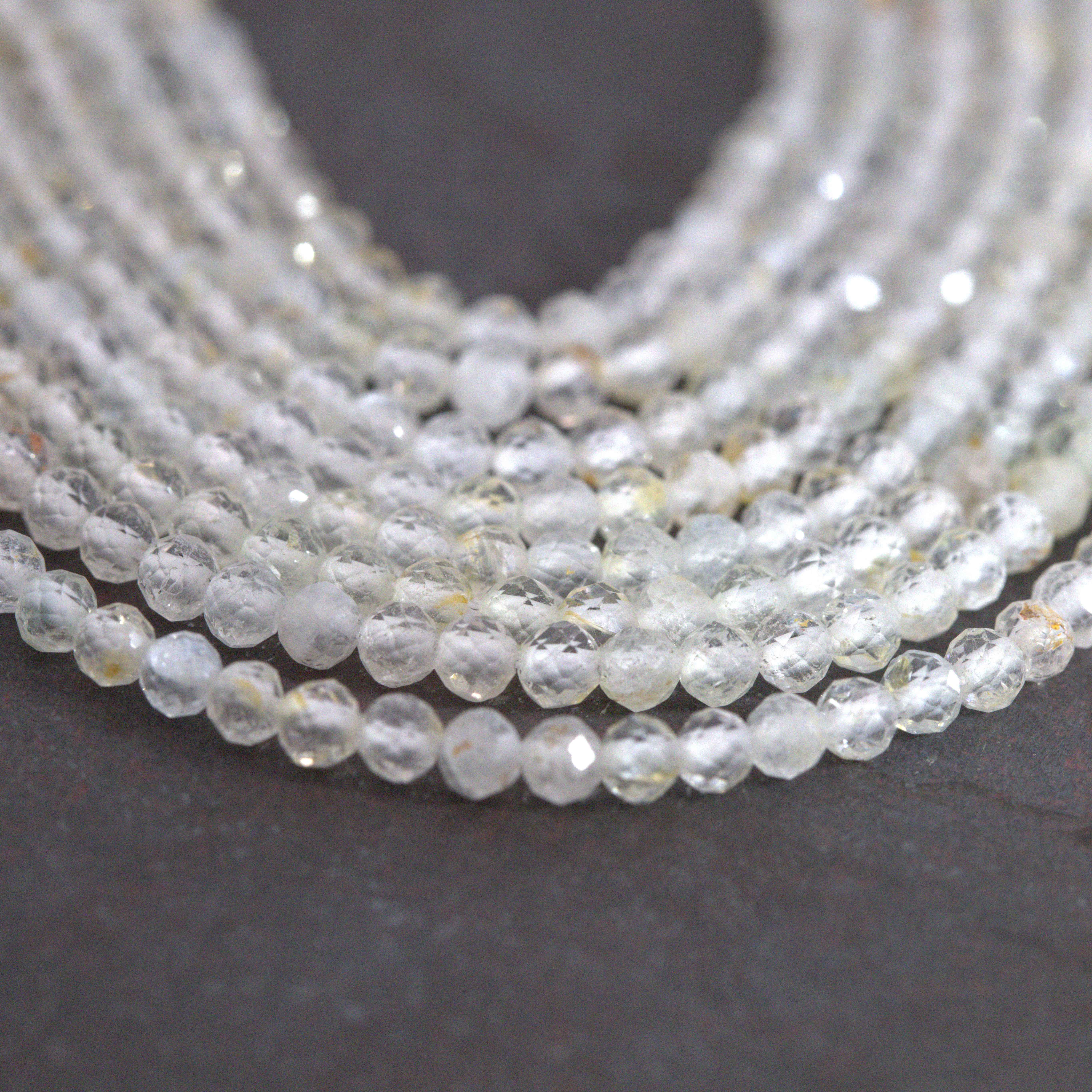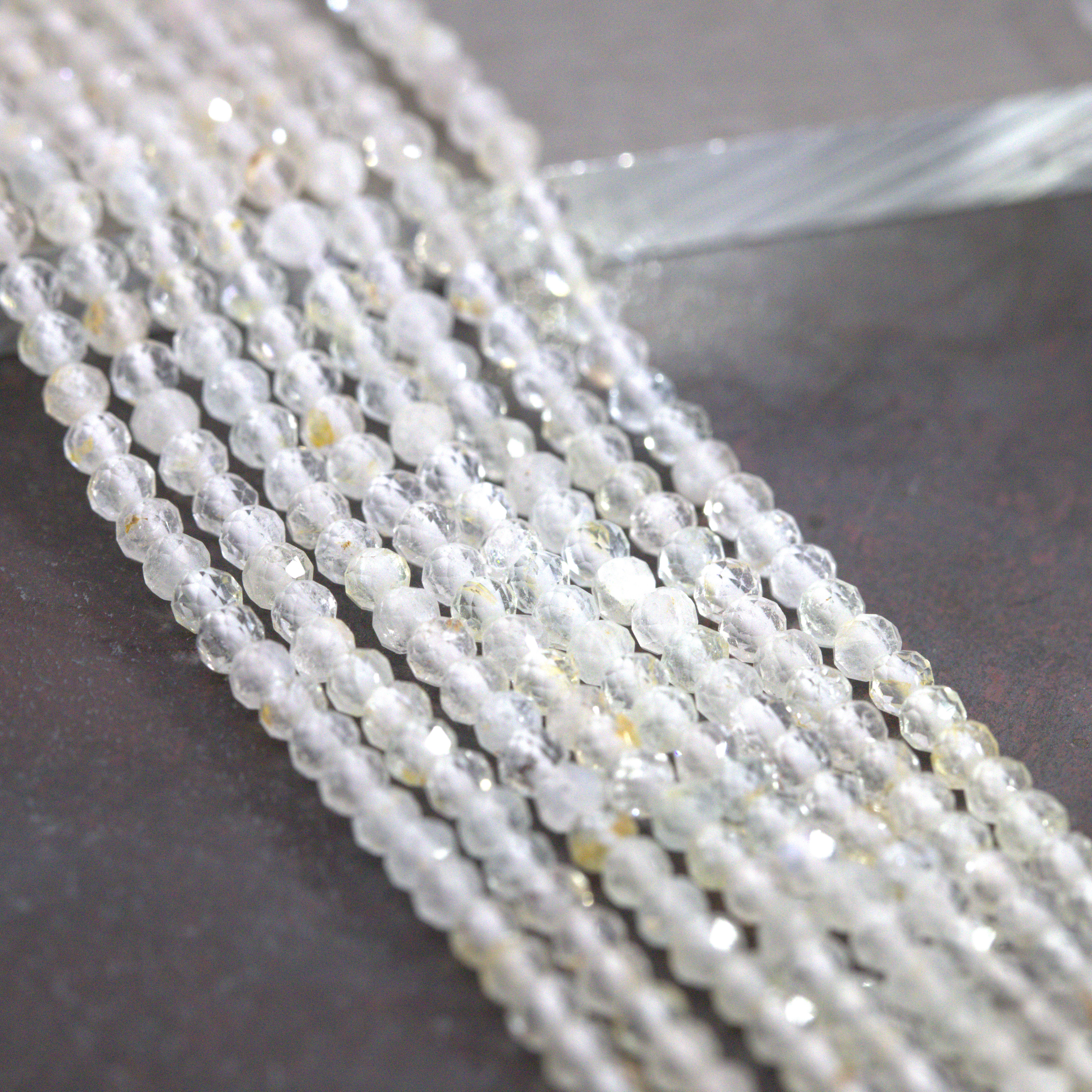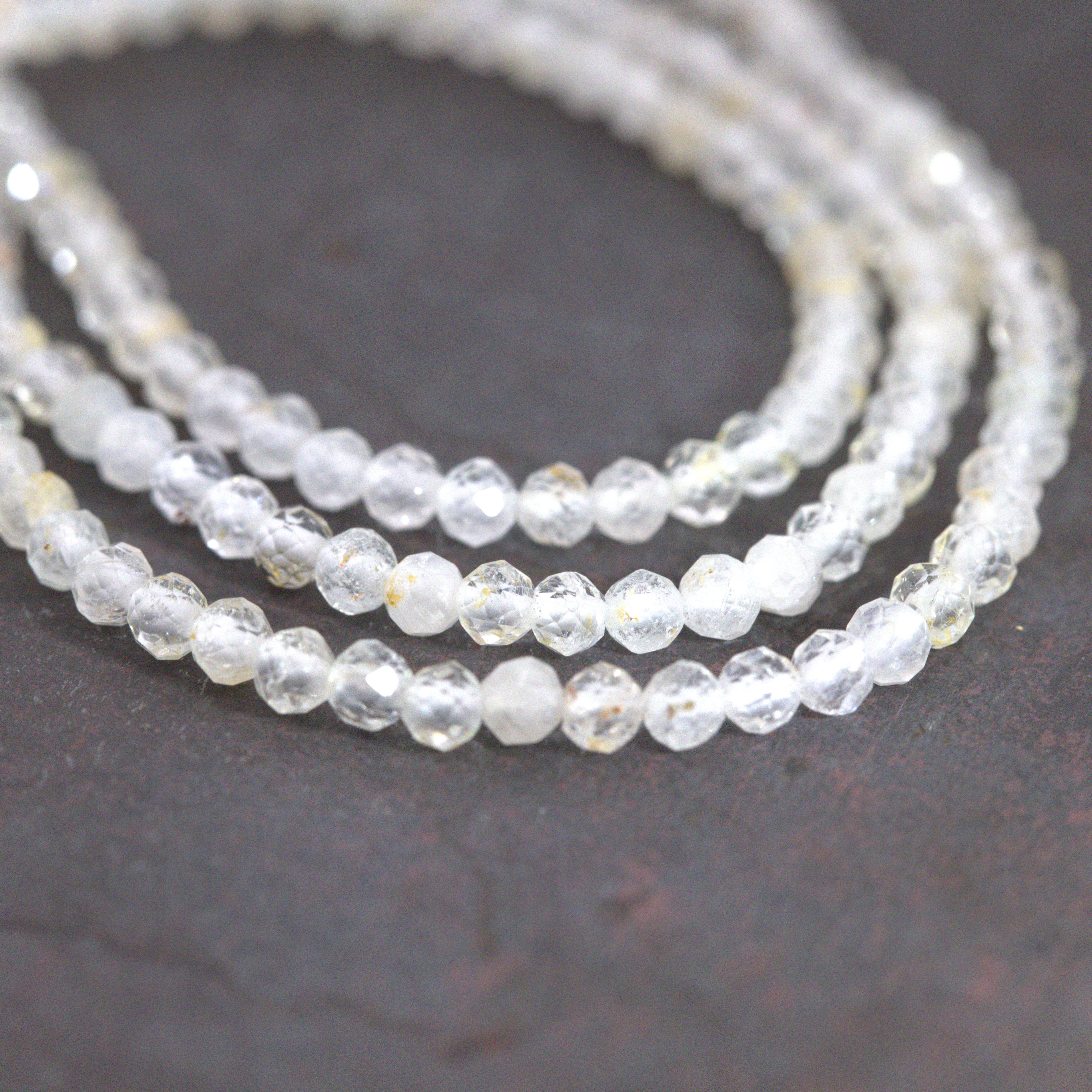 Weißer facettierter Topaz Perlenstrang 3,2 mm (ca. 110 Perlen / ca. 38 cm Länge)