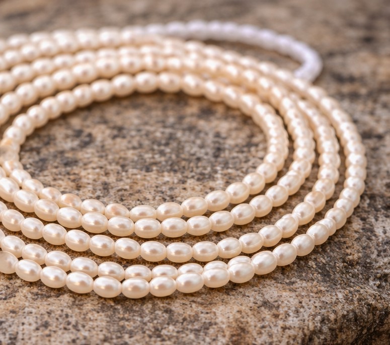 Zierlicher Süßwasser Zuchtperlenstrang 3 - 4 x 2,5 mm (ca. 38 cm Länge)