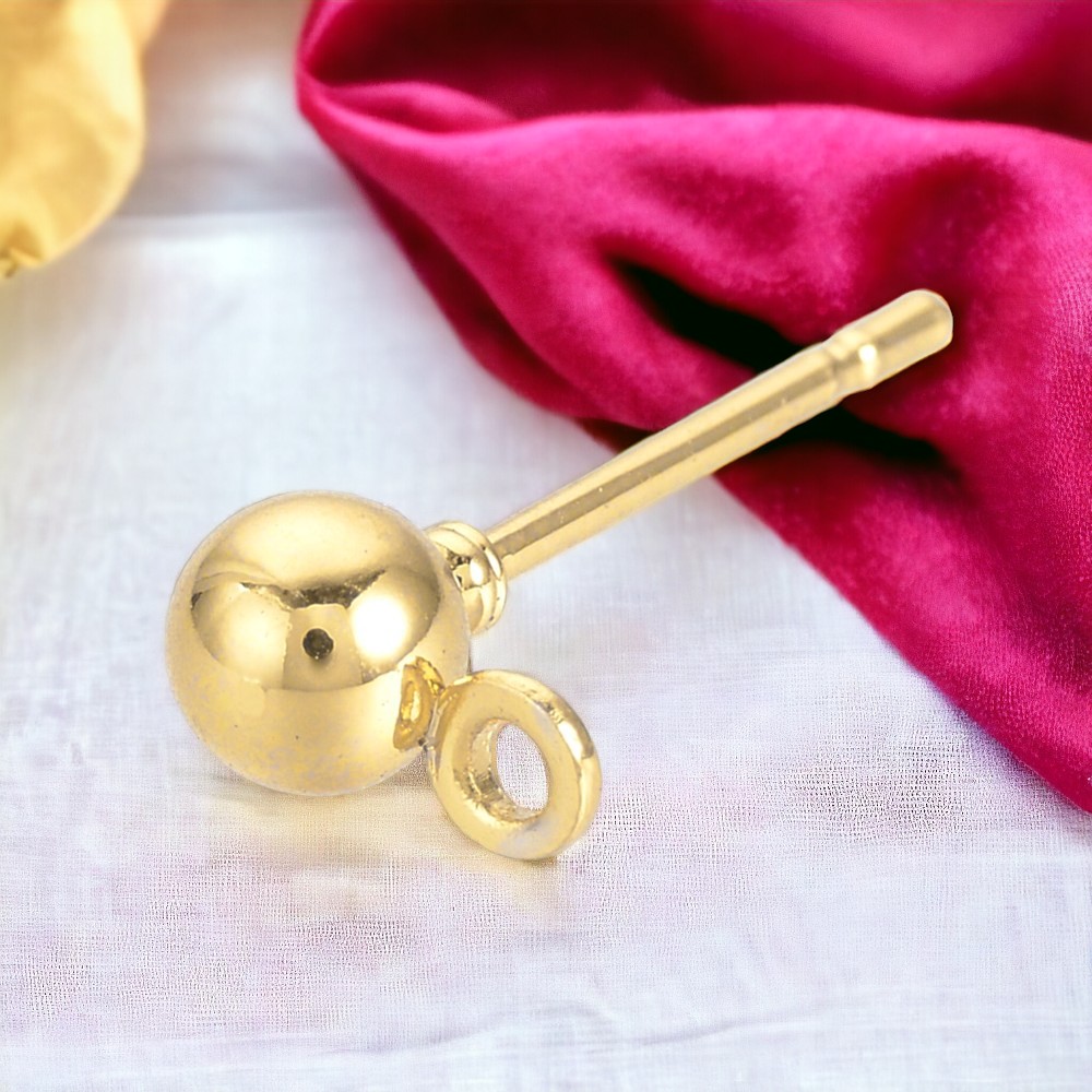 10 Ohrstecker aus Eisen goldfarben mit Kugel und Anhängeröse und weichem Ohrstopper 6,5 x 4 mm