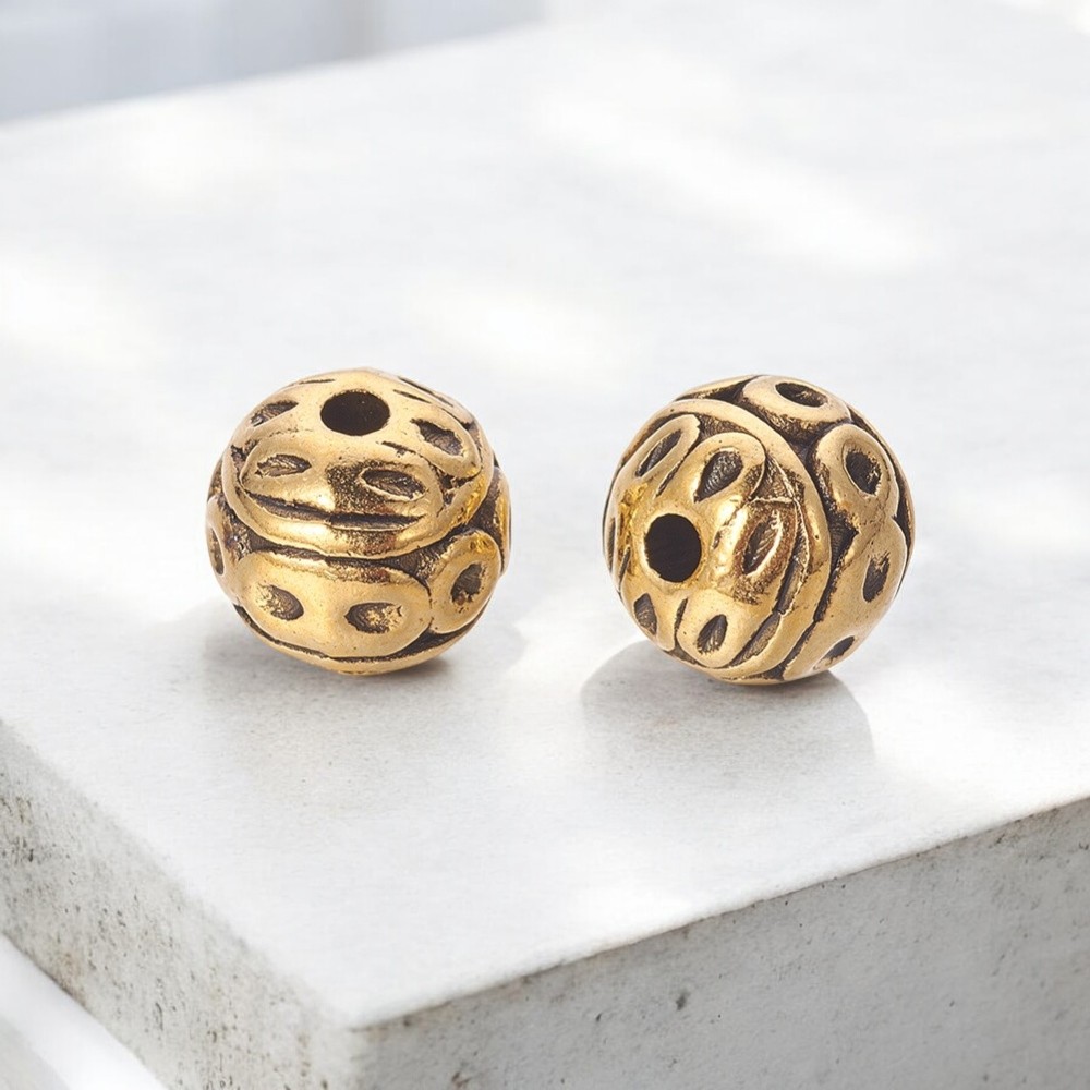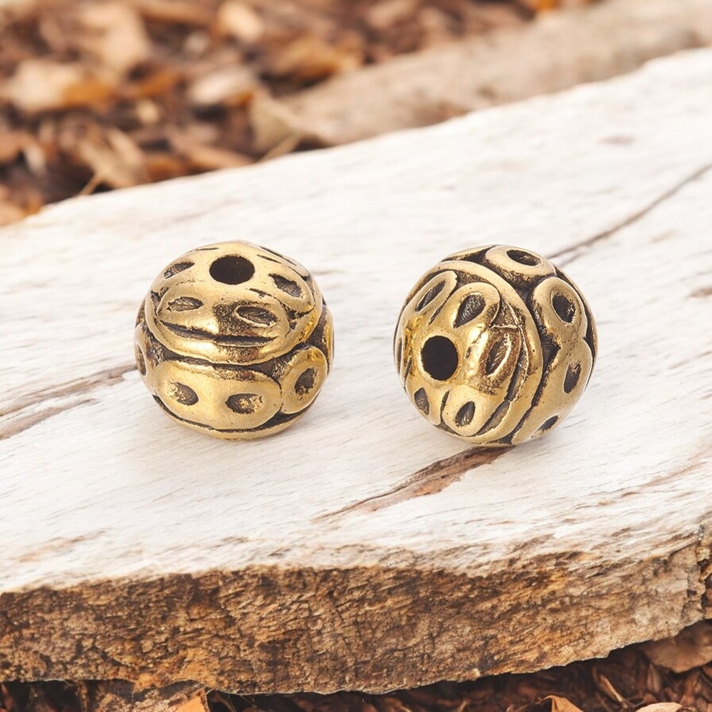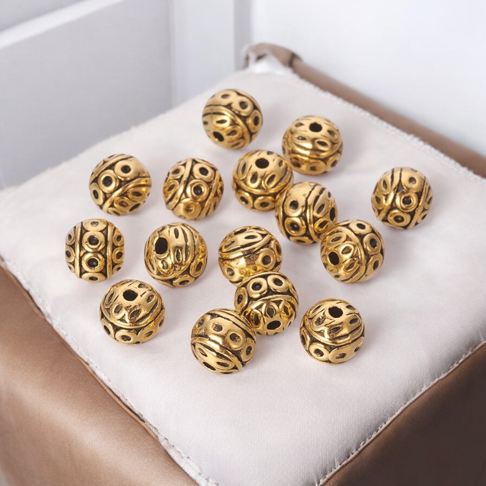 10 tibetische Metallperlen Zwischenperlen 8 mm goldfarben