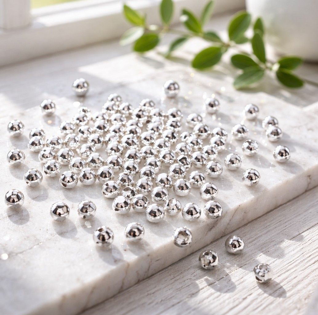 Produktinformationen "100 Silber Spacer Perlen 4 mm rund glatt - Metallperlen für Schmuck DIY"