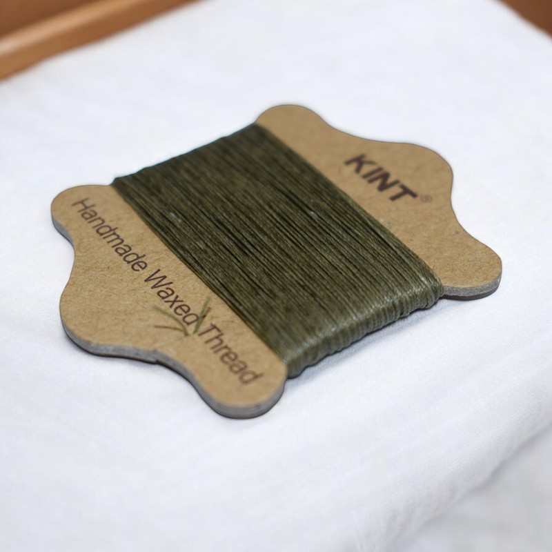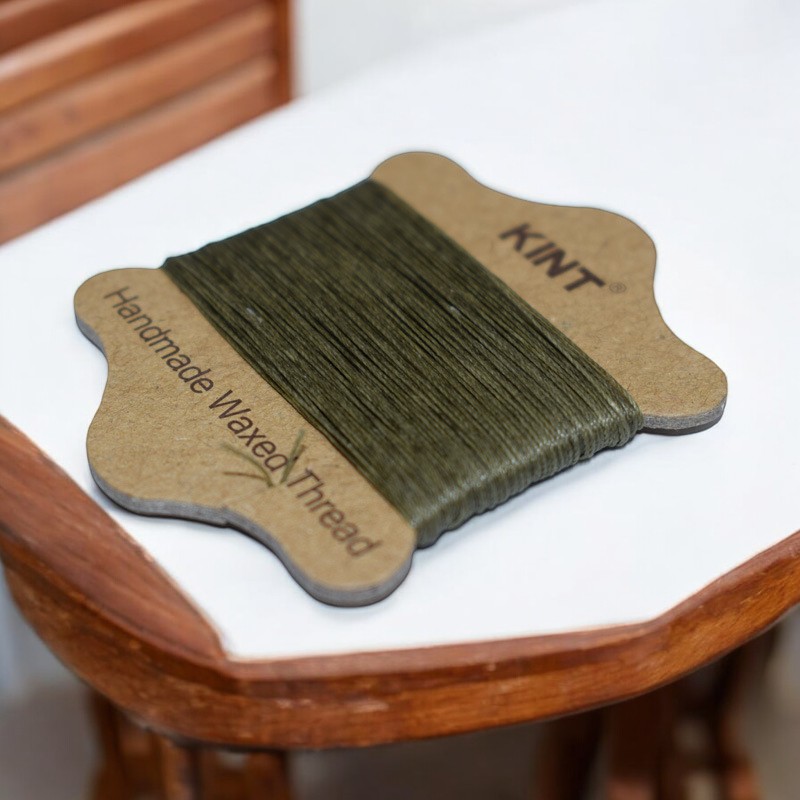 Produktinformationen "18 Meter gewachste Nylonschnur dunkel oliv auf Kärtchen"