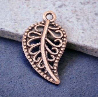 2 Charm Anhänger Blatt kupferfarben 18 x 10,5 x 1,5 mm