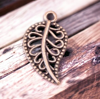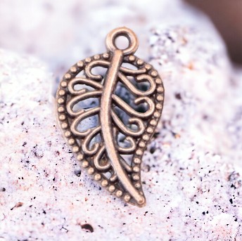 Produktinformationen "2 Charm Anhänger Blatt kupferfarben 18 x 10,5 x 1,5 mm"