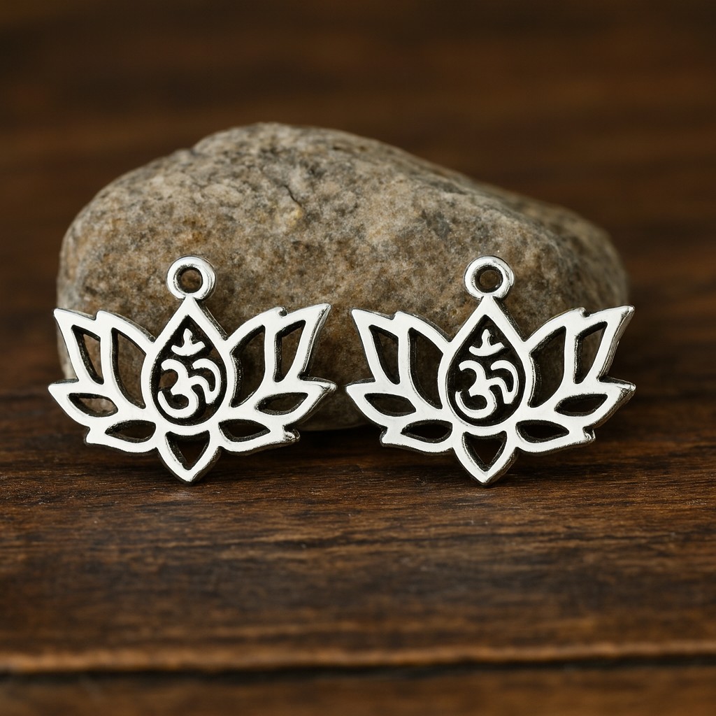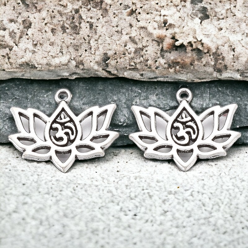 2 Charm Anhänger Lotusblume Ohm 16 x 20 x 1,5 mm
