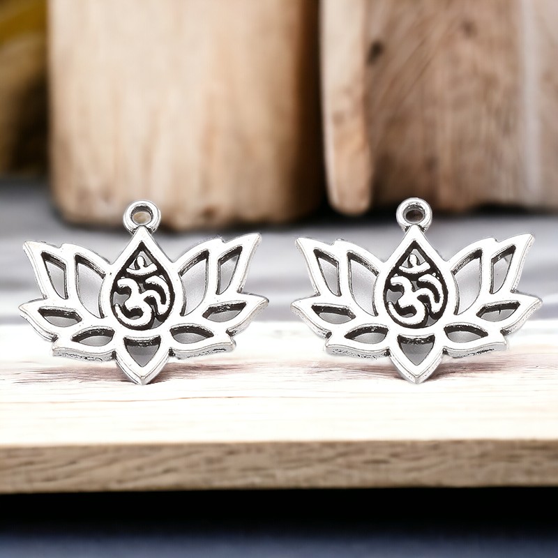 Produktinformationen "2 Charm Anhänger Lotusblume Ohm 16 x 20 x 1,5 mm"