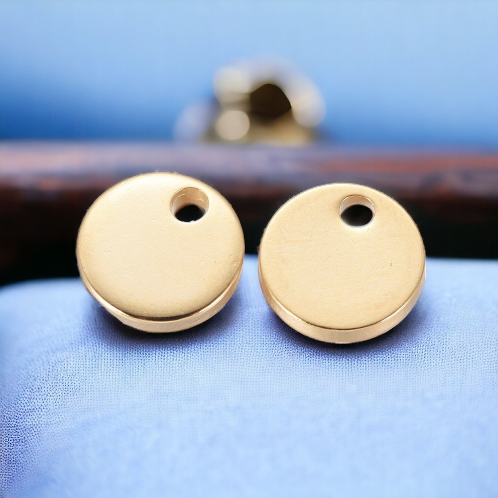 2 Edelstahl Charms Charm Anhänger flachrund goldfarben 10 x 1 mm