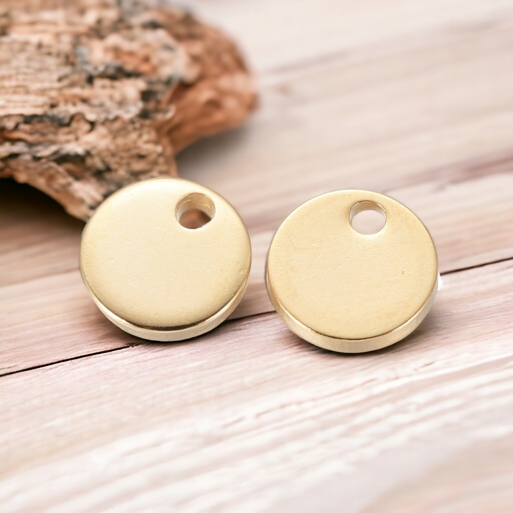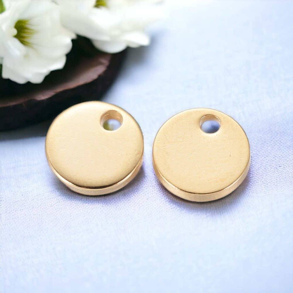 Produktinformationen "2 Edelstahl Charms Charm Anhänger flachrund goldfarben 10 x 1 mm"