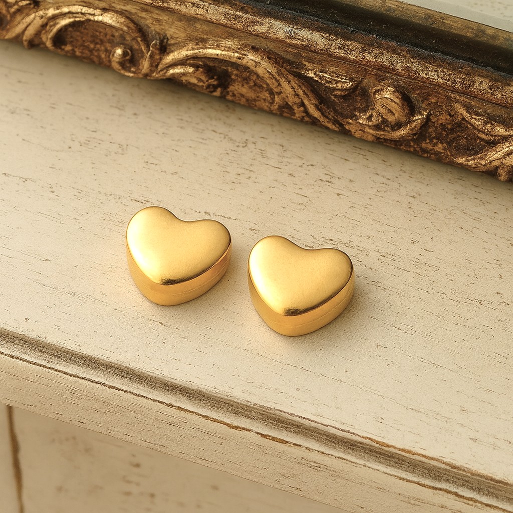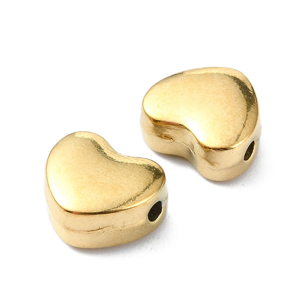 2 Edelstahl Herzperlen 18k vergoldet 8 x 9 x 4,5 mm
