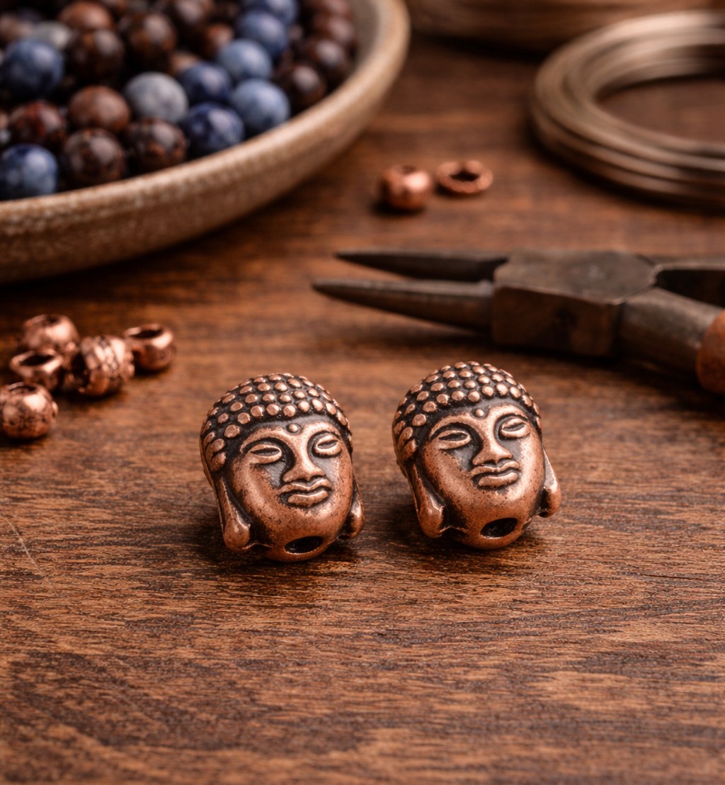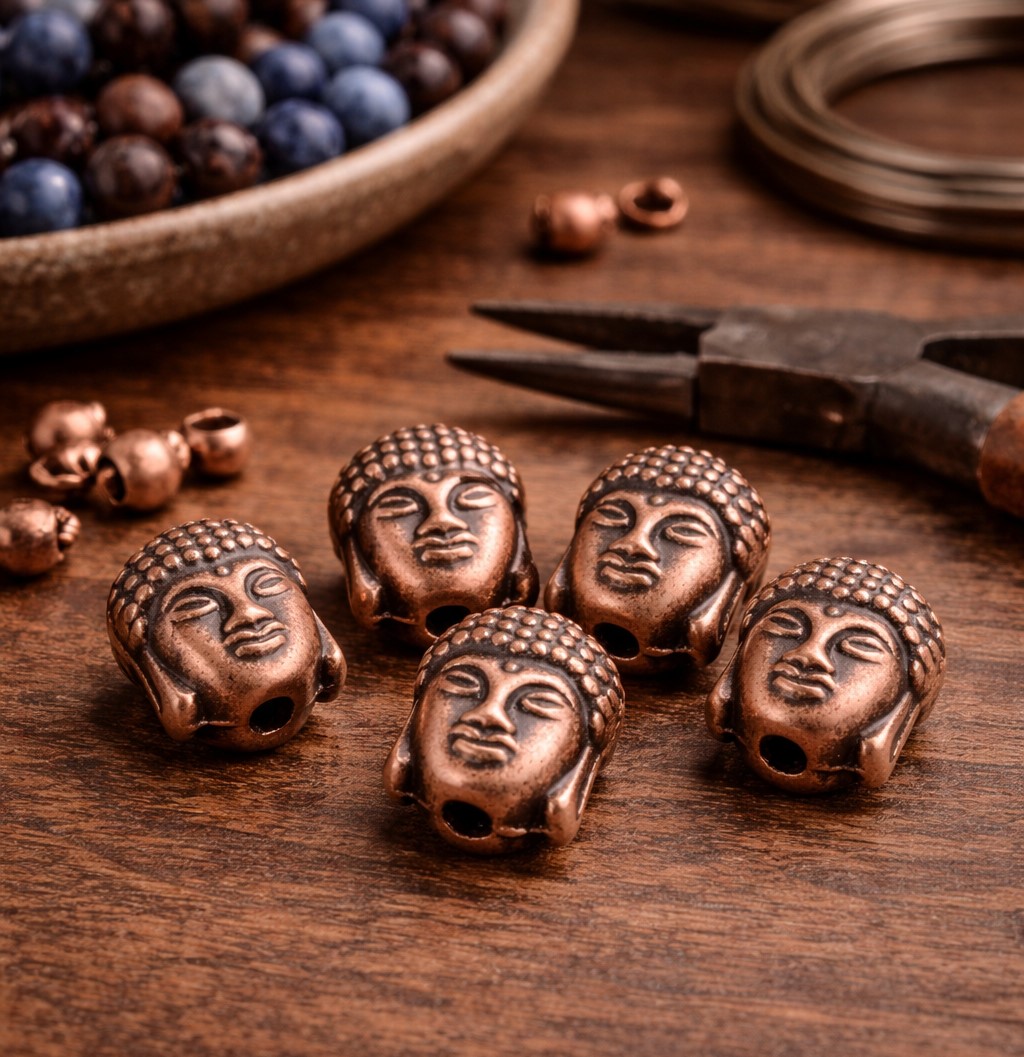 Die fein gearbeiteten Gesichtszüge und die strukturierte Oberfläche machen jede Perlen zu einem ausdrucksstarken Highlight für Mala-Ketten, Armbänder oder individuelle DIY-Schmuckstücke. Dank der warmen Vintage-Kupferfarbe lassen sich die Buddha-Perlen hervorragend mit Natursteinperlen oder Holzperlen kombinieren.