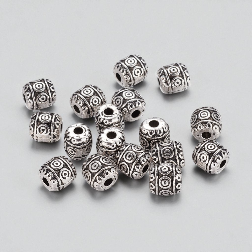 Produktinformationen "20 tibetische Metallperlen 6 x 6 mm antik silberfarben nickelfrei"