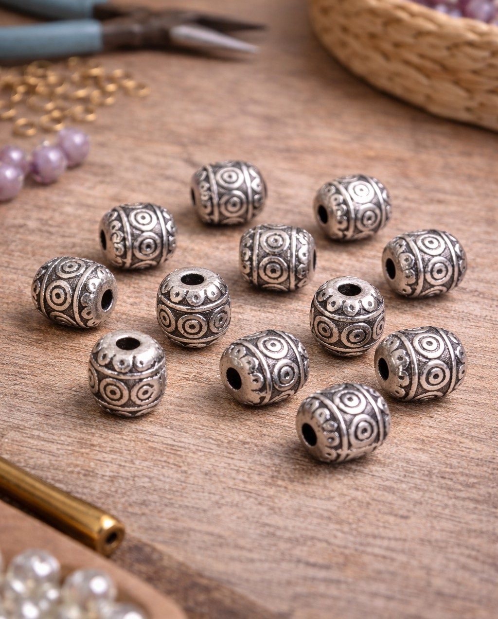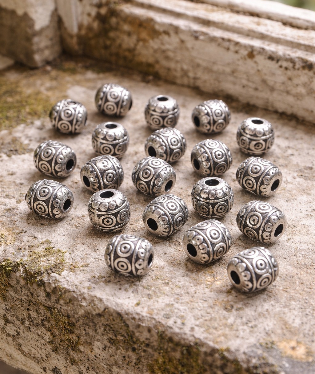 20 tibetische Metallperlen 6 x 6 mm antik silberfarben nickelfrei