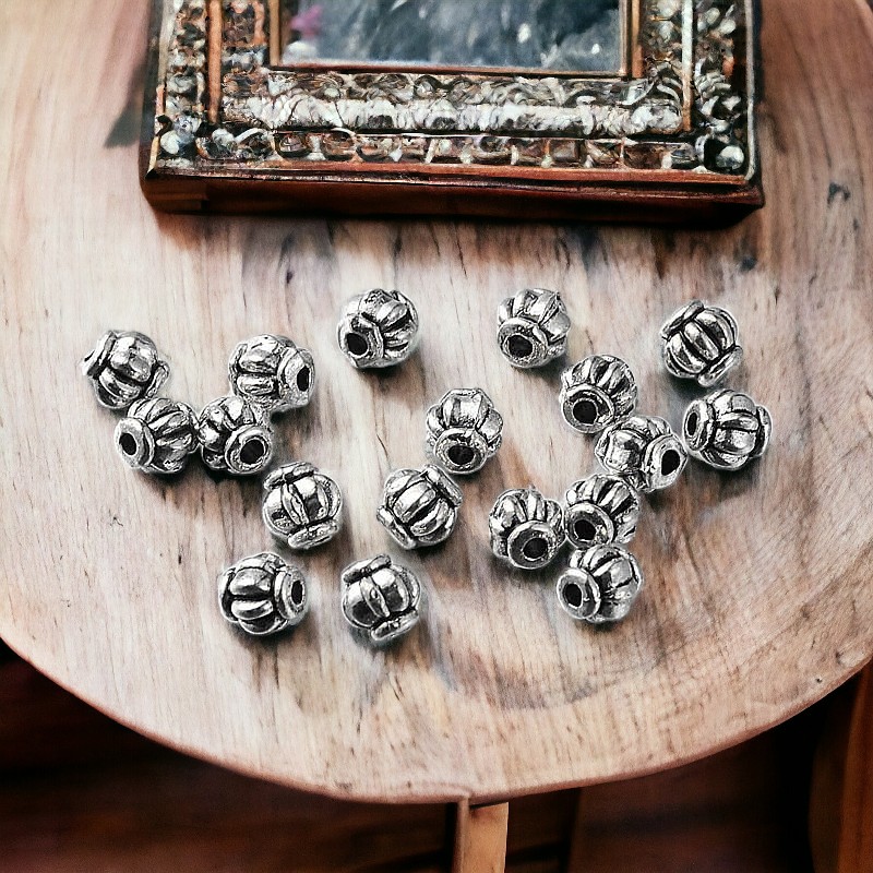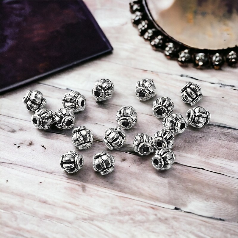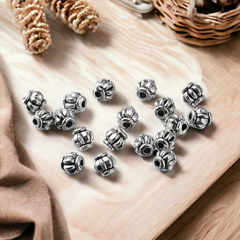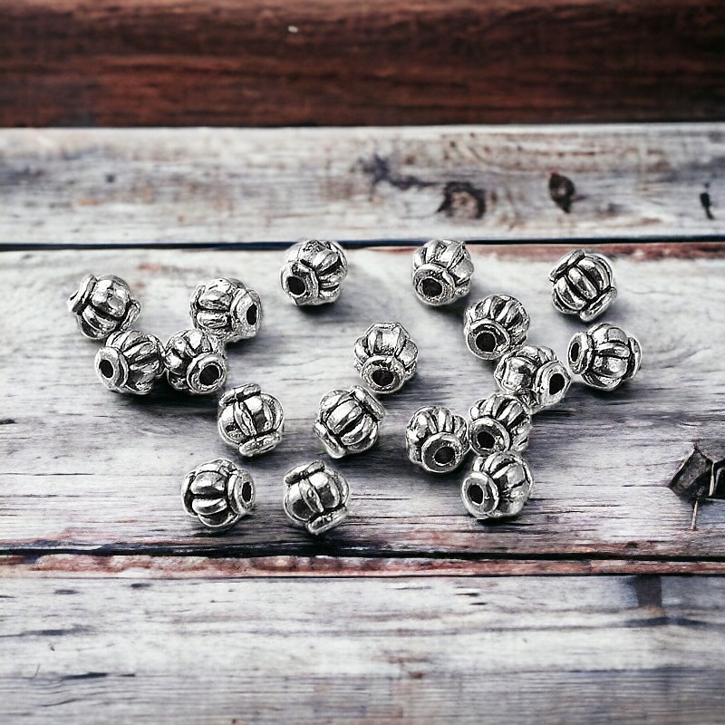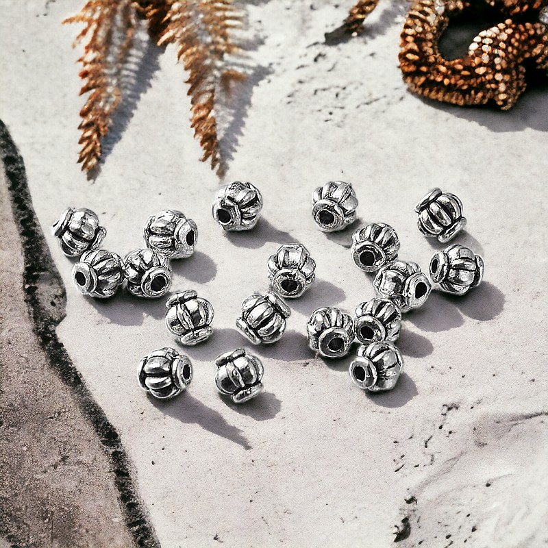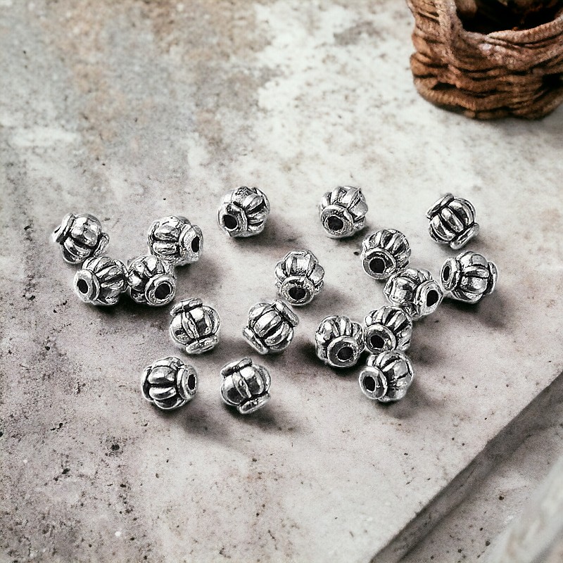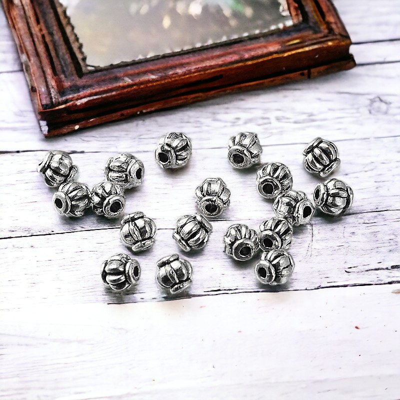 20 tibetische Metallperlen Laterne antik silberfarben 4 x 4 mm