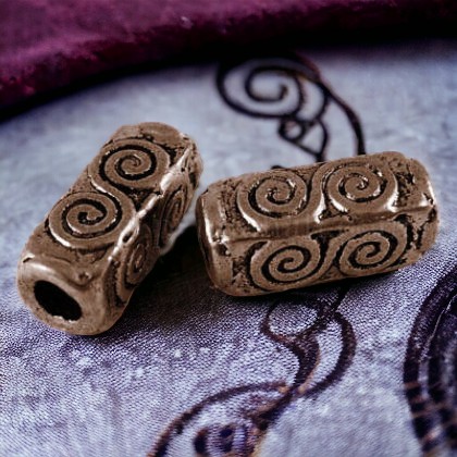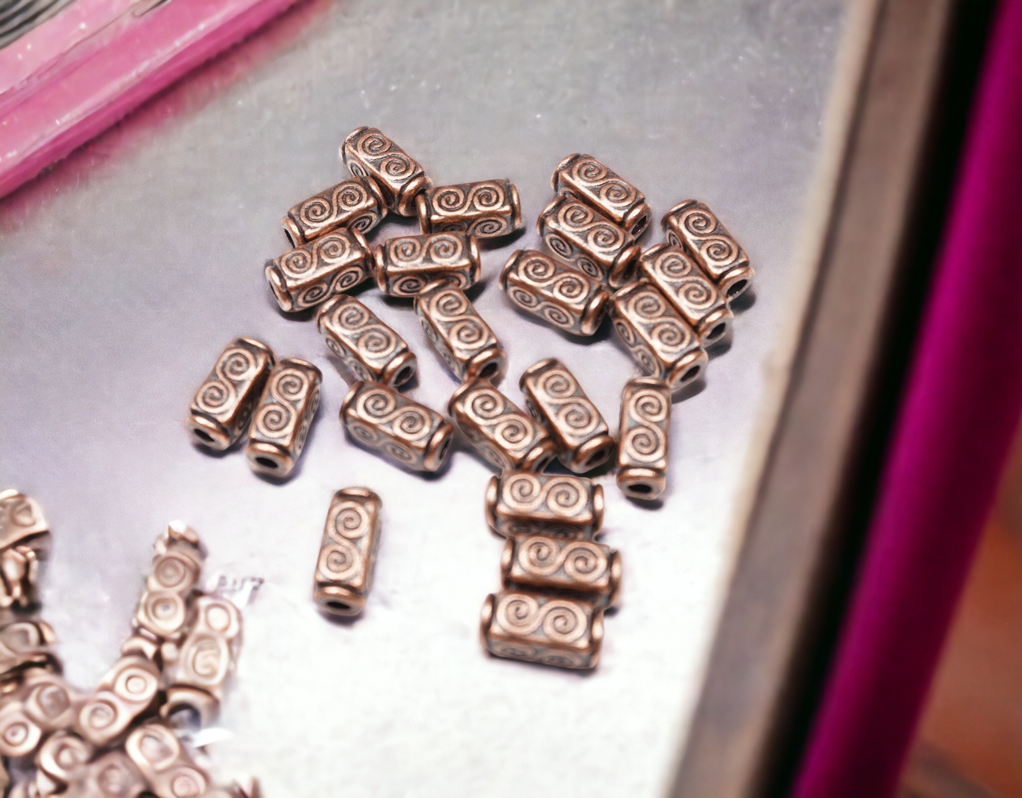 20 tibetische Metallperlen 5 mm Durchmesser 10,5 mm Länge kupferfarben