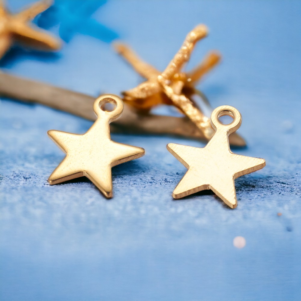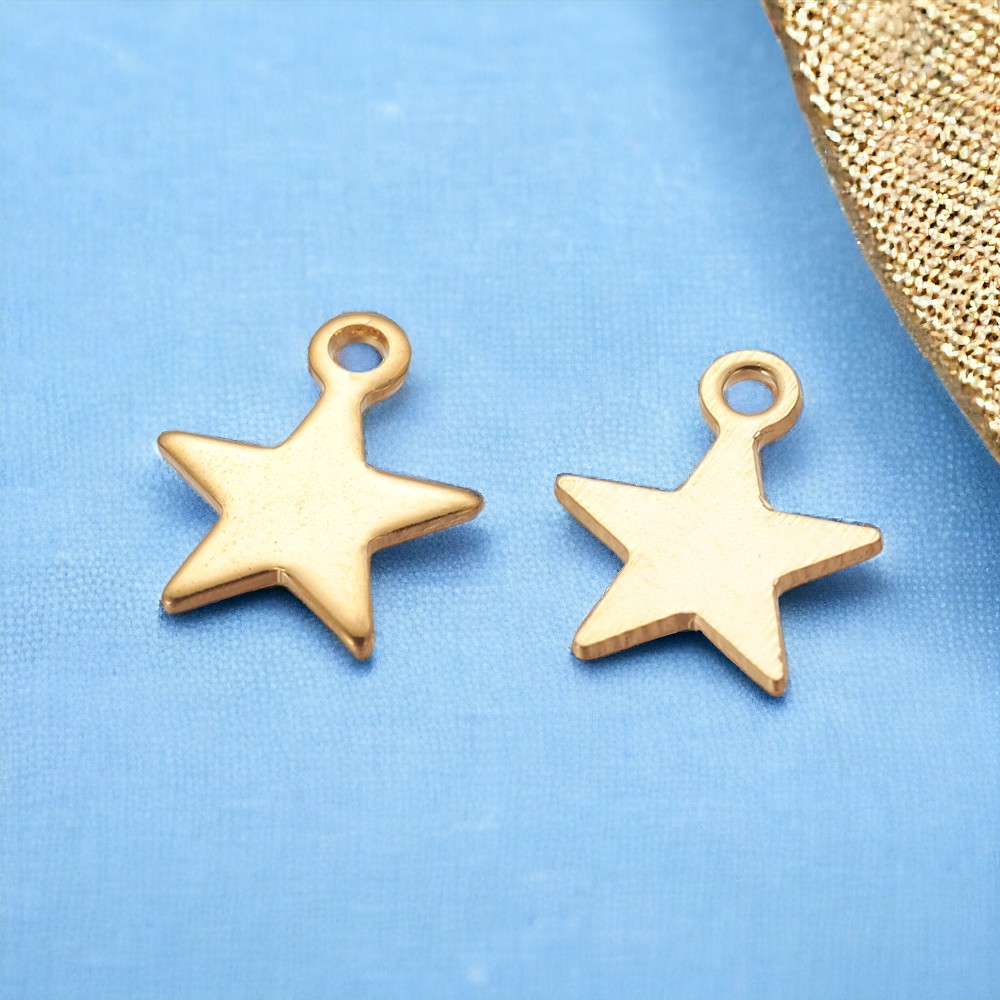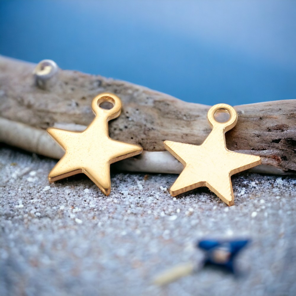 3 Edelstahl Charm Anhänger Stern goldfarben 10 x 8 5 x 1 mm