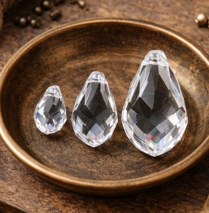 Produktinformationen "3 geschliffene Glasperlen Tropfen oben quergebohrt"