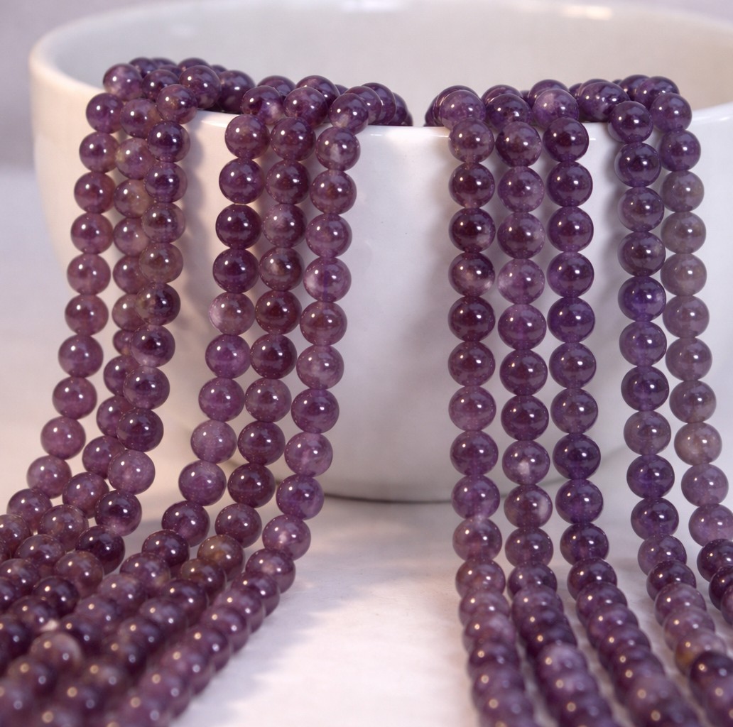 Produktinformationen "Amethyst Perlenstrang 6 - 6,2 mm Klasse AB rund (ca. 66 Perlen / ca. 38 cm Länge)"
