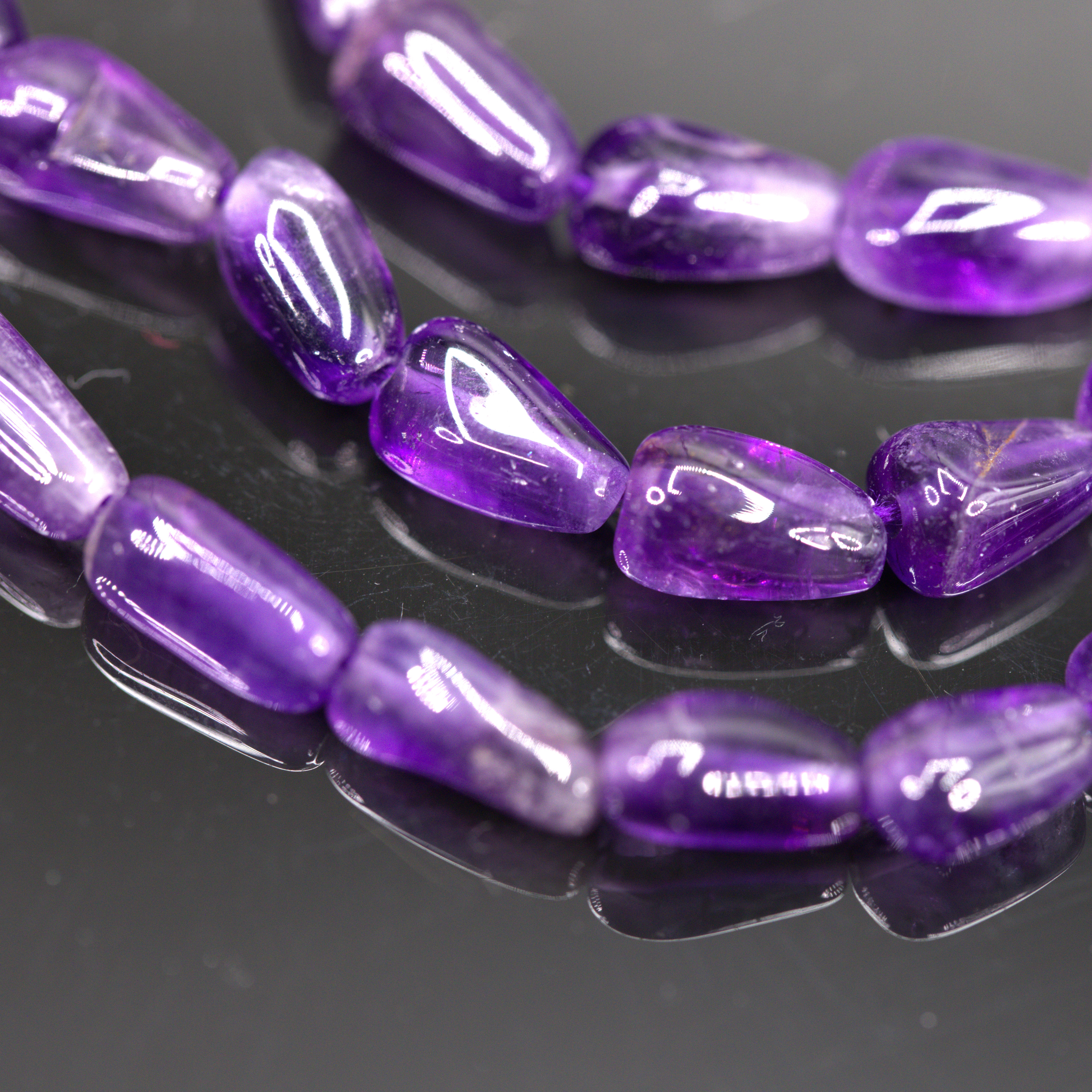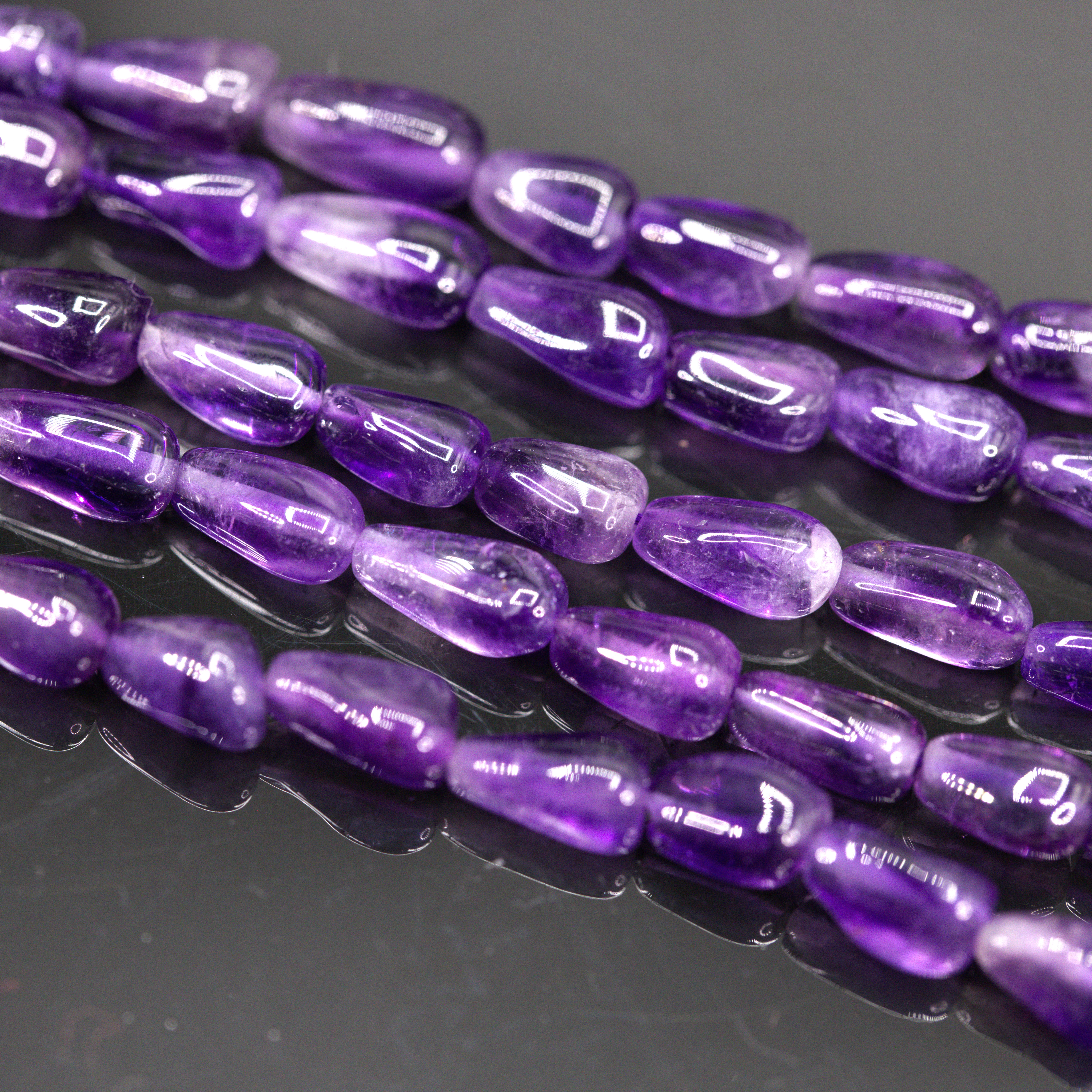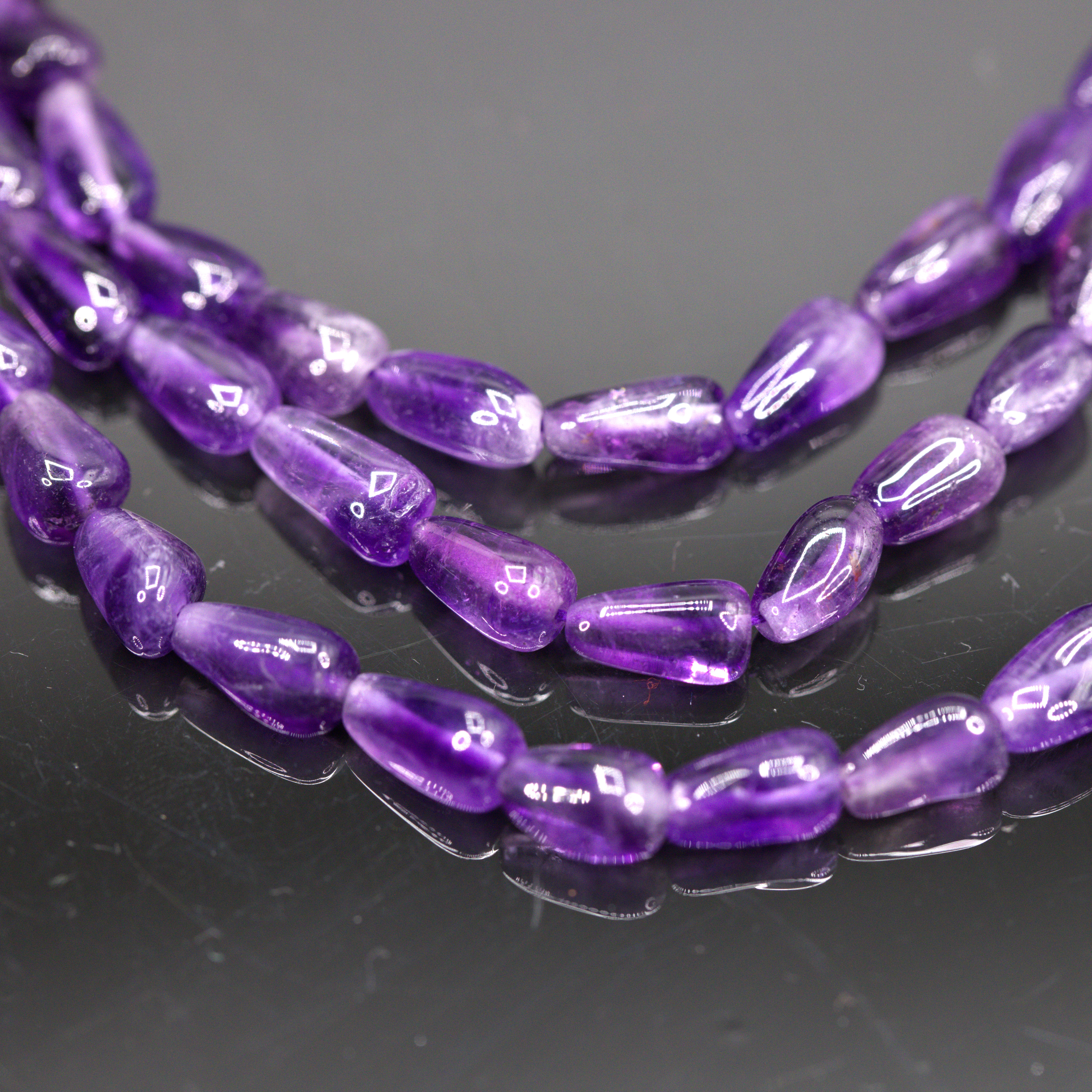 Produktinformationen "Amethyst Perlenstrang 8-10 x 5 mm unregelmäßige Tränen (ca. 33 cm Länge)"