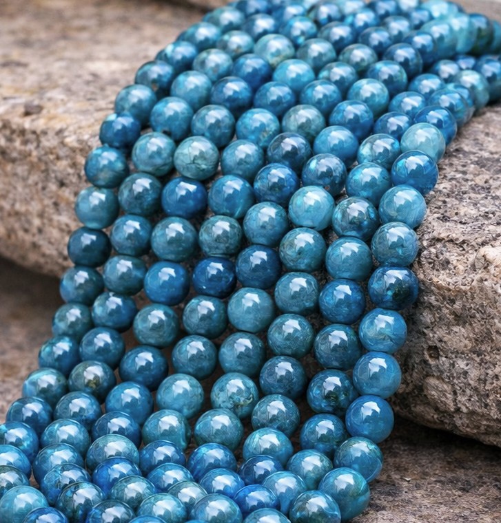 Dieser hochwertige Apatit Perlenstrang besticht durch seine intensive blau-türkise Farbgebung. Die runden Natursteinperlen verleihem jedem Schmuckstück eine lebendige Ausstrahlung.