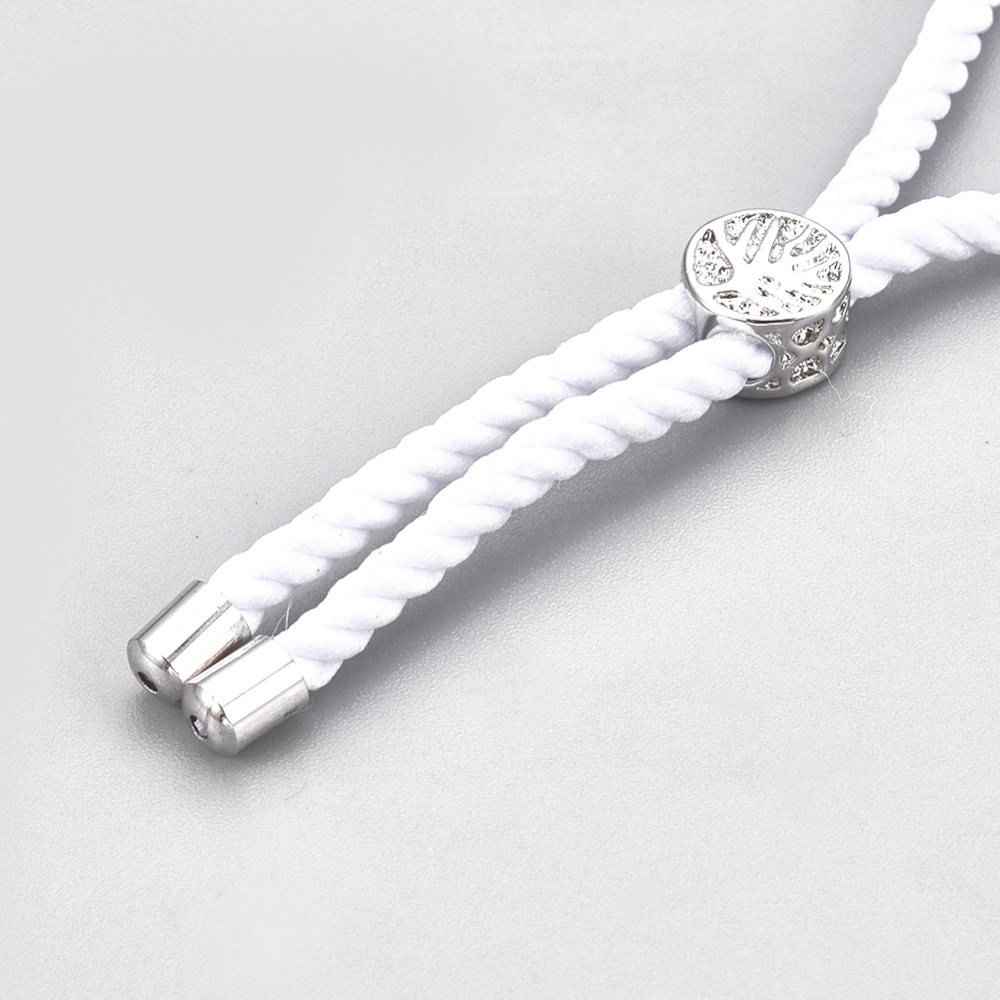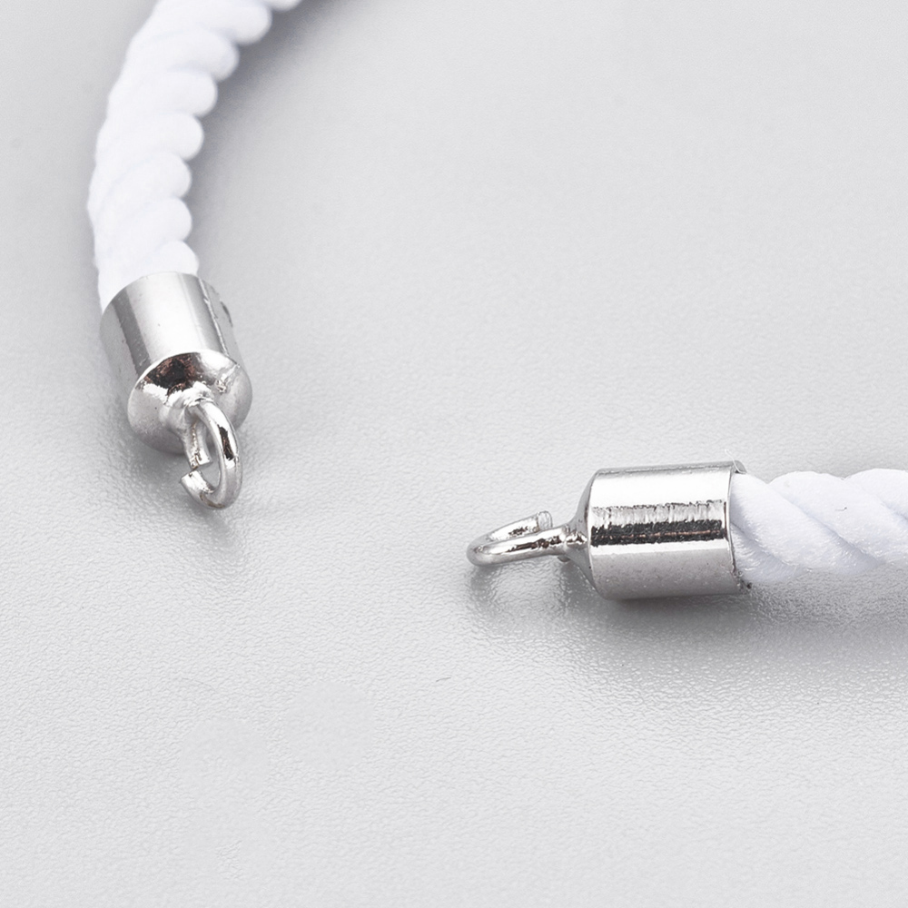 Produktinformationen "Armband Rohling weiße Baumwollschnur mit platinfarbenen Messingösen Bandenden und Schiebeverschluß"