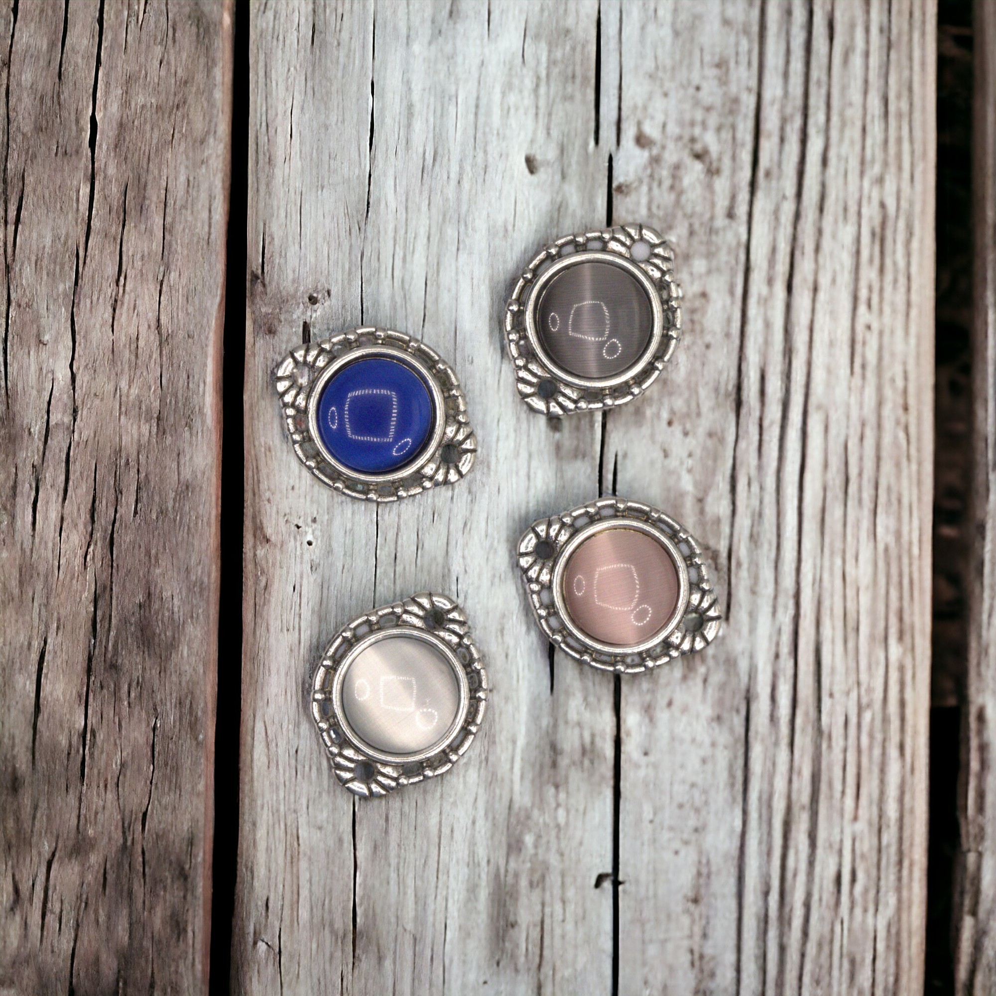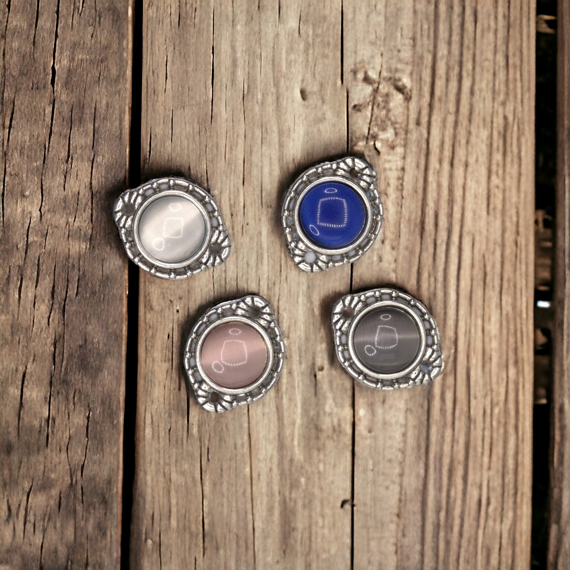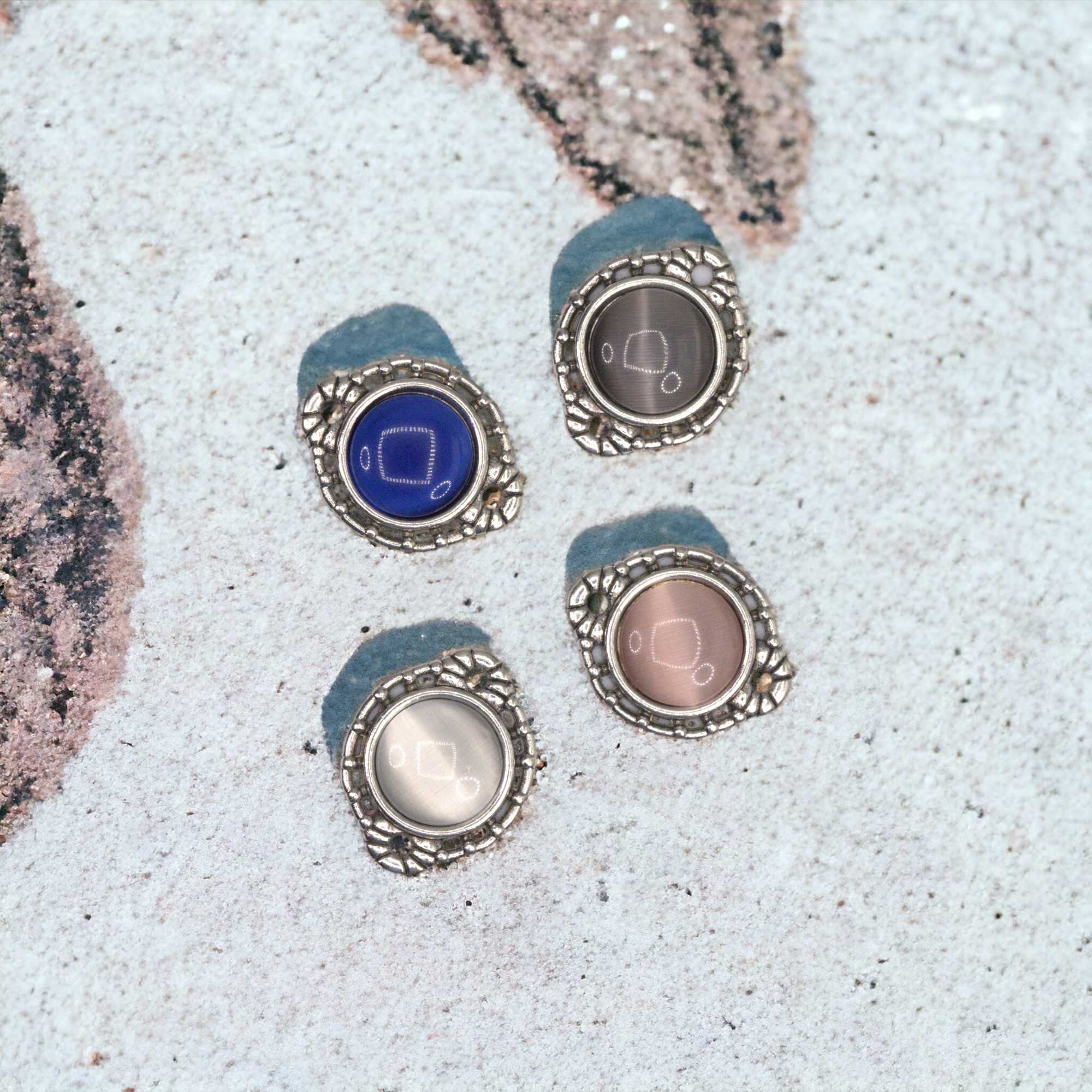 mit 4 passenden Cabochons in rauchweiß, zartrosa, grau und mitternachtsblau