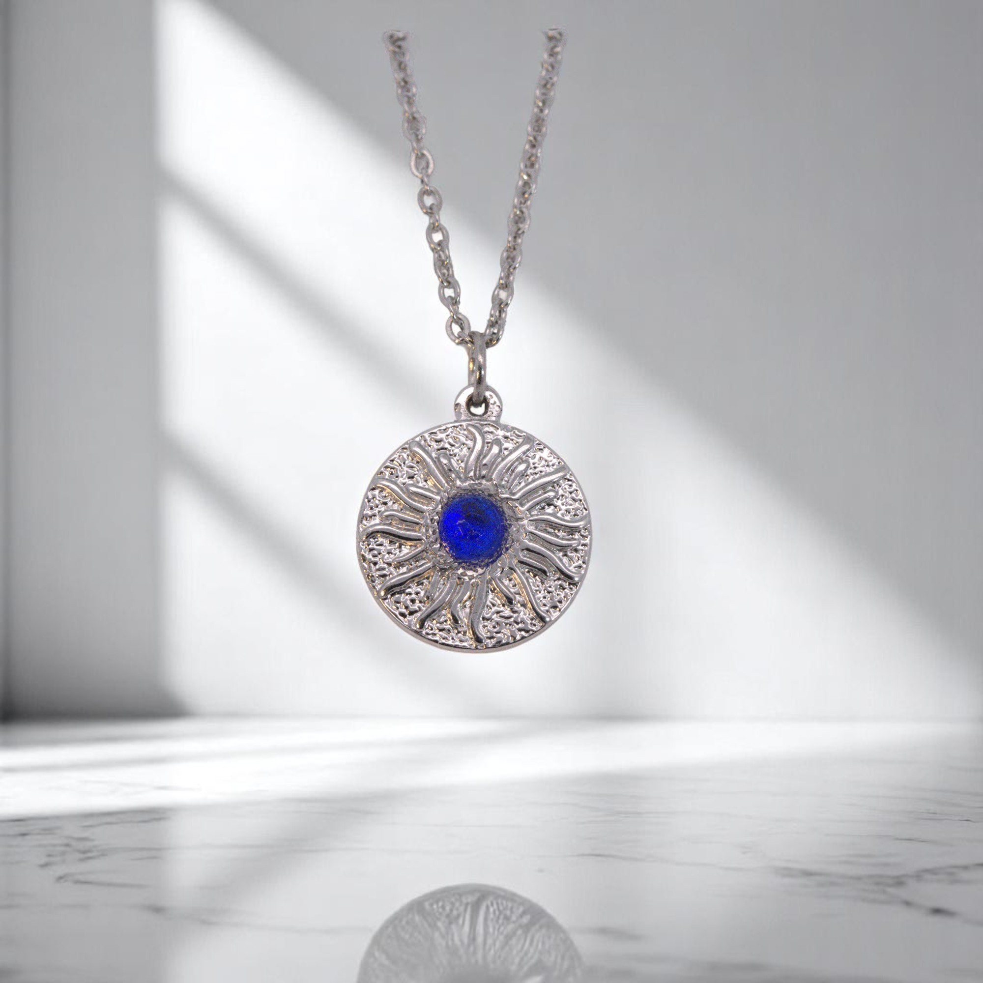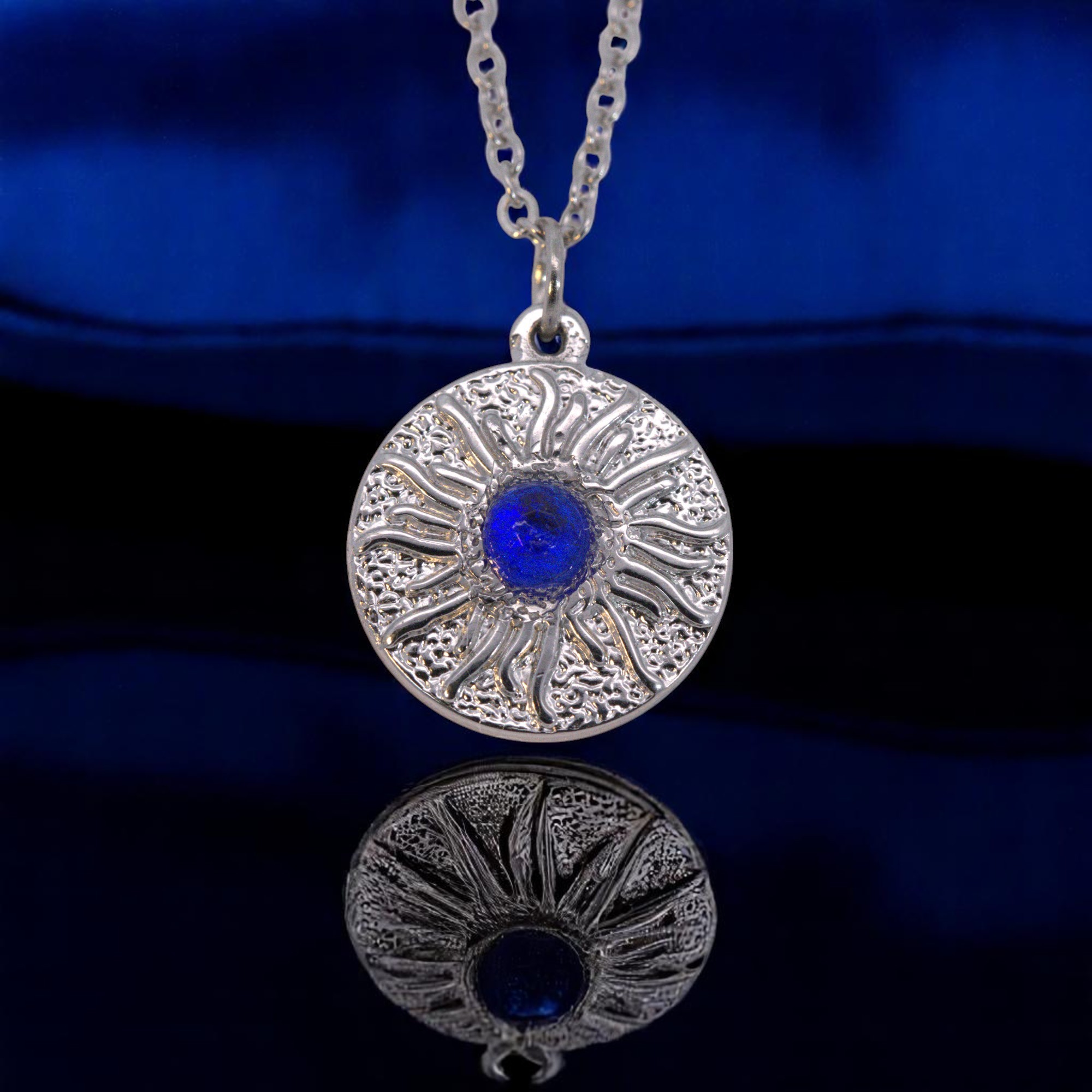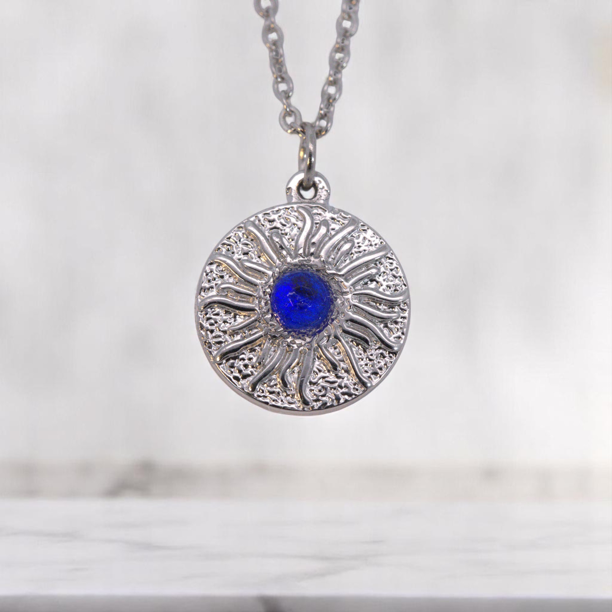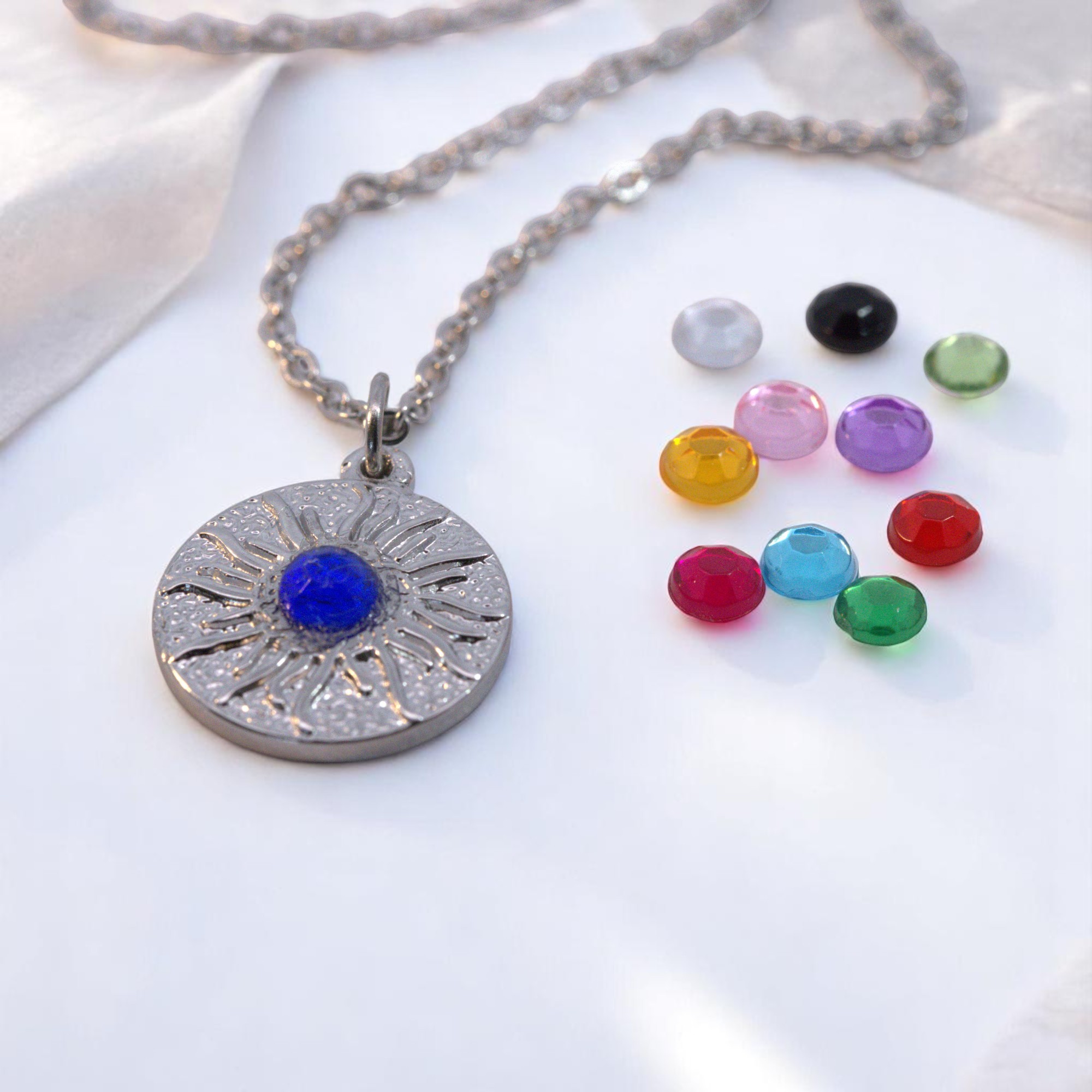 Einfach den Lieblingscabochon mit Sekunden- oder Schmuckkleber einkleben, den Biegering in die Öse des Anhängers einfügen, die Kette in den Biegering einfügen und den Biegering mit der Zange zusammendrücken.