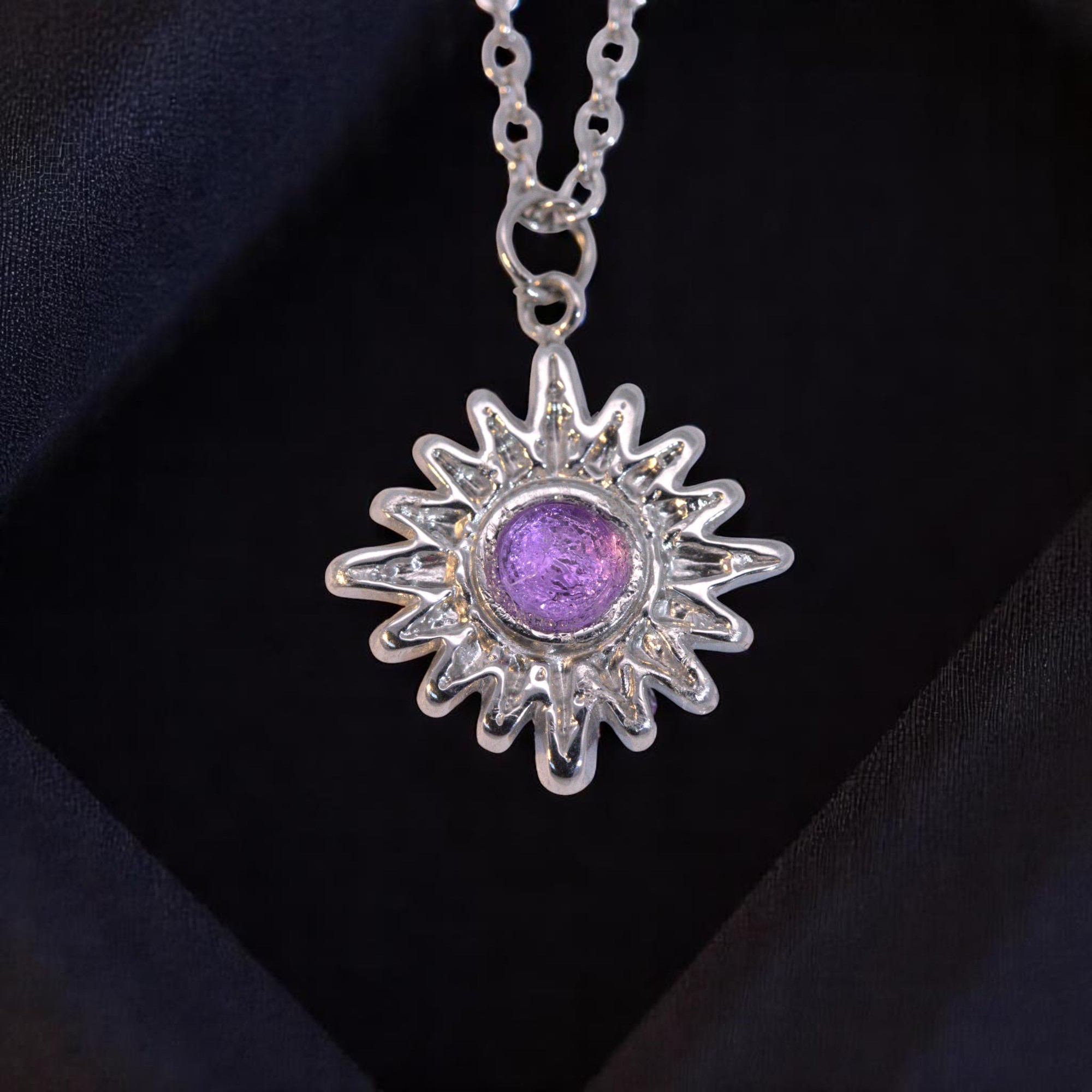 Einfach den Lieblingscabochon mit Sekunden- oder Schmuckkleber einkleben, den Biegering in die Öse des Anhängers einfügen, die Kette in den Biegering einfädeln und mit dann den Biegering mit der Zange zusammendrücken.