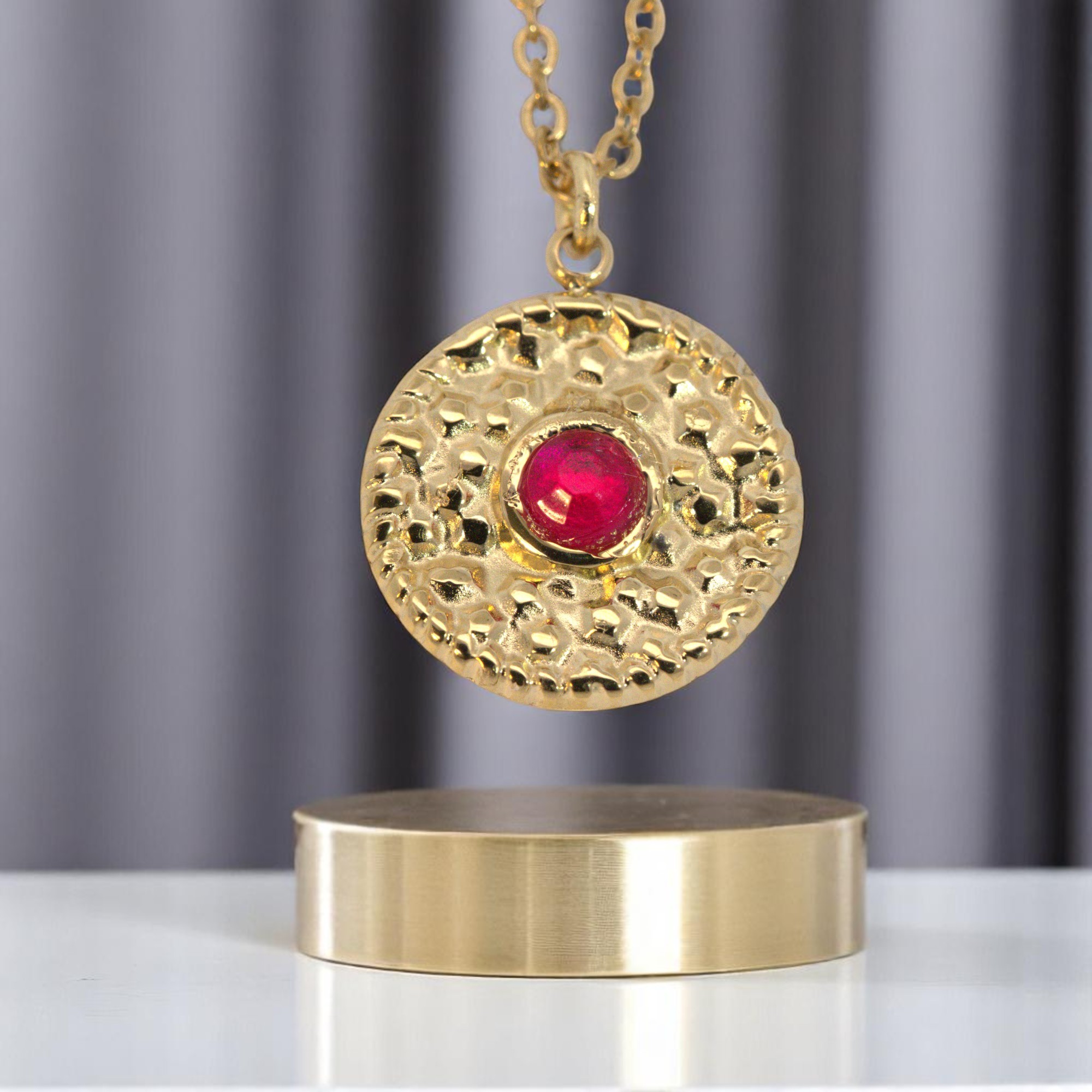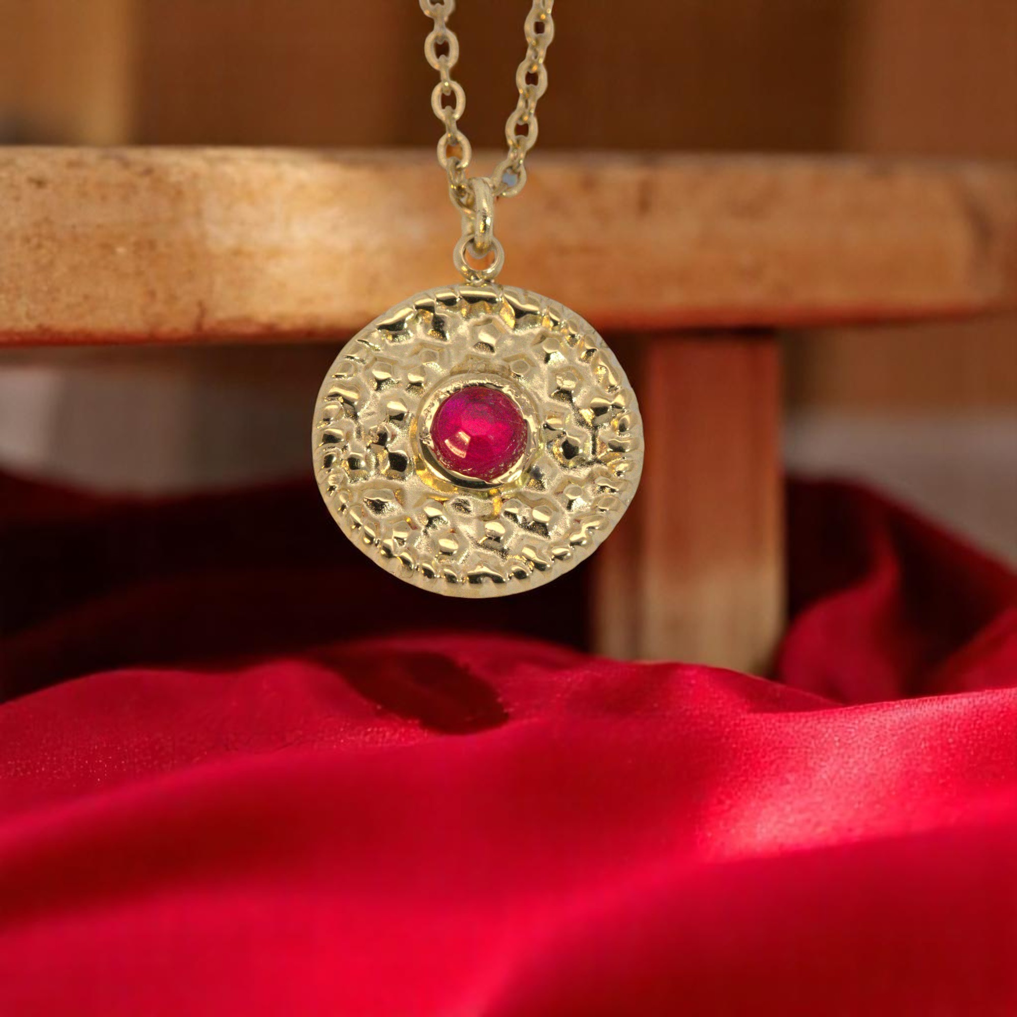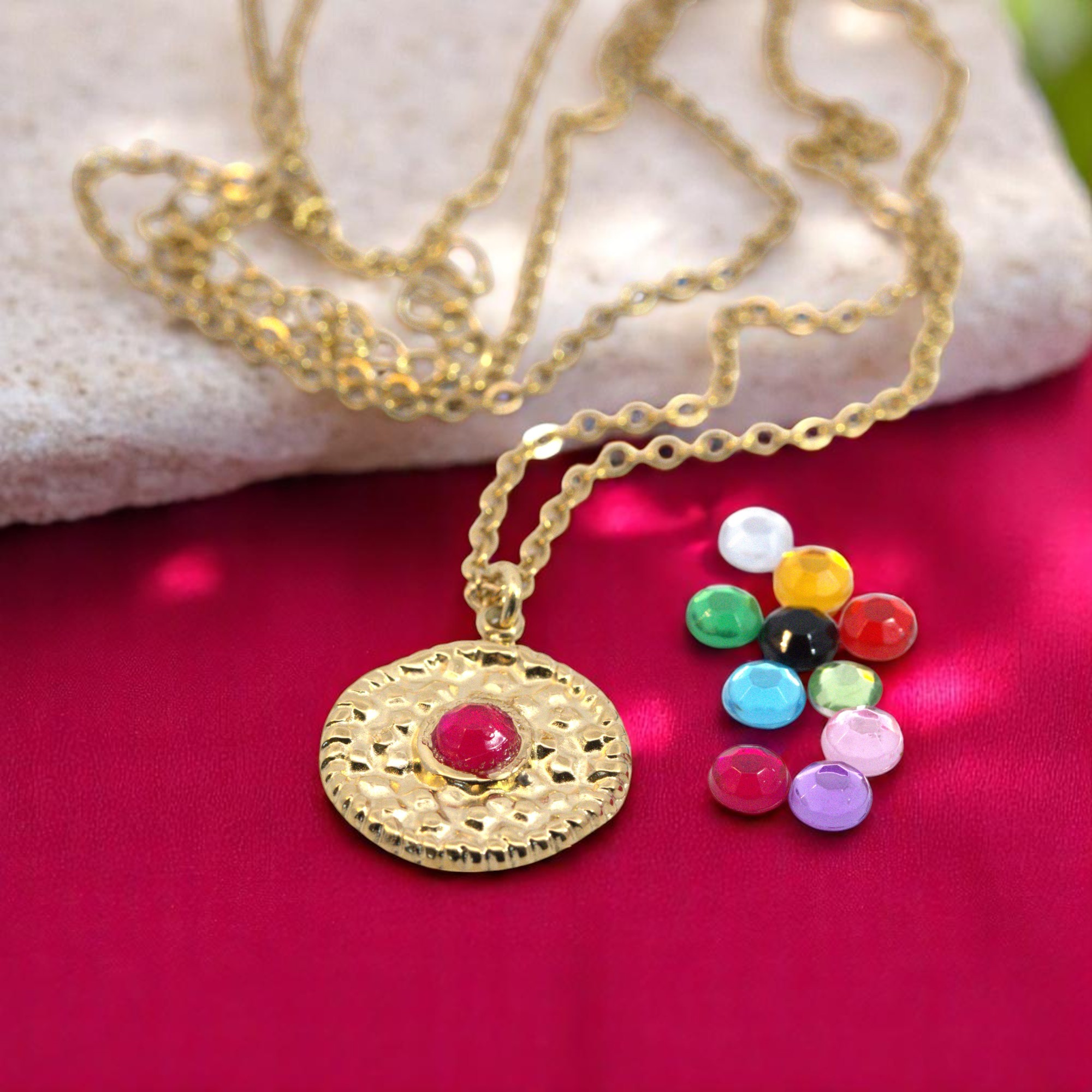 Einfach den Lieblingscabochon mit Sekunden- oder Schmuckkleber einkleben, den Biegering in die Öse des Anhängers einfügen, die Kette in den Biegering einfügen und den Biegering mit der Zange zusammendrücken.