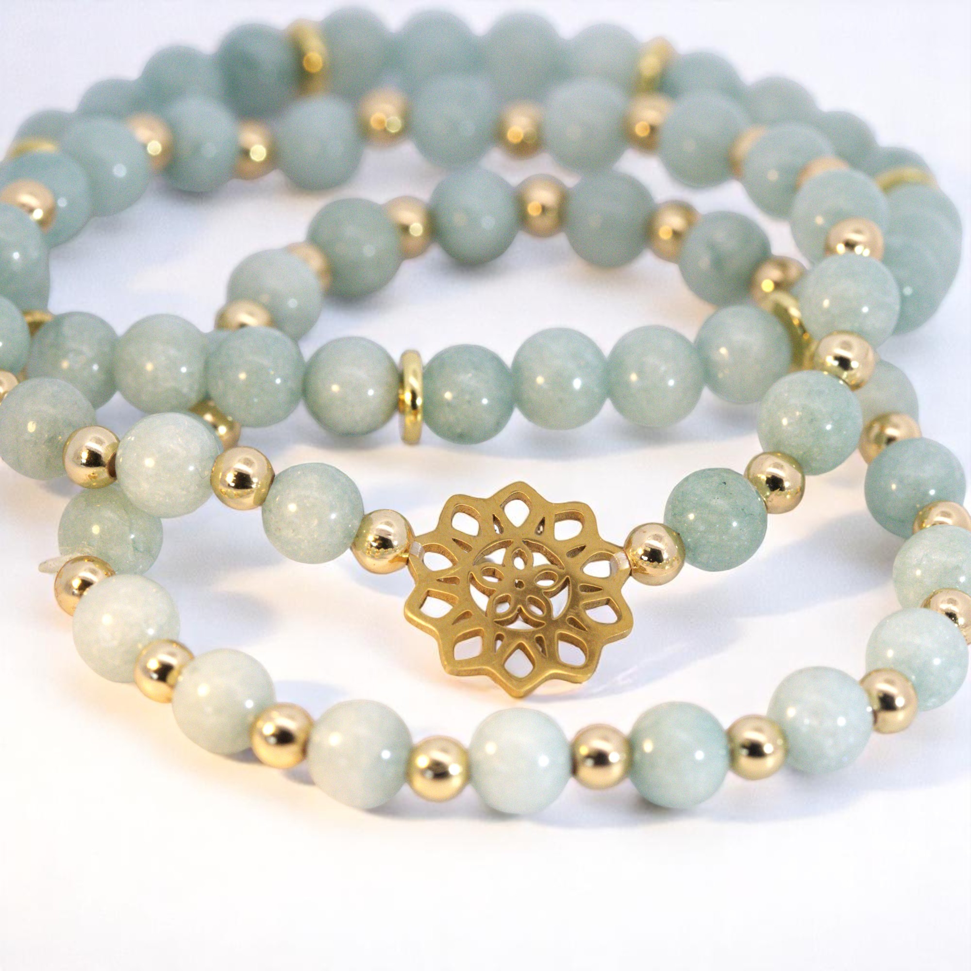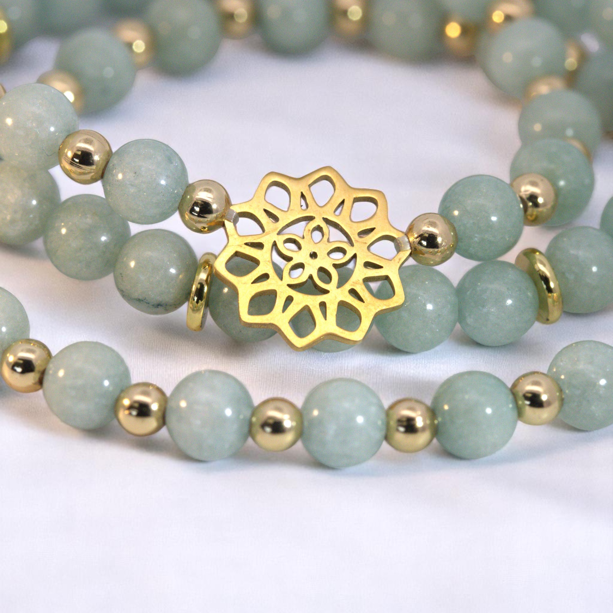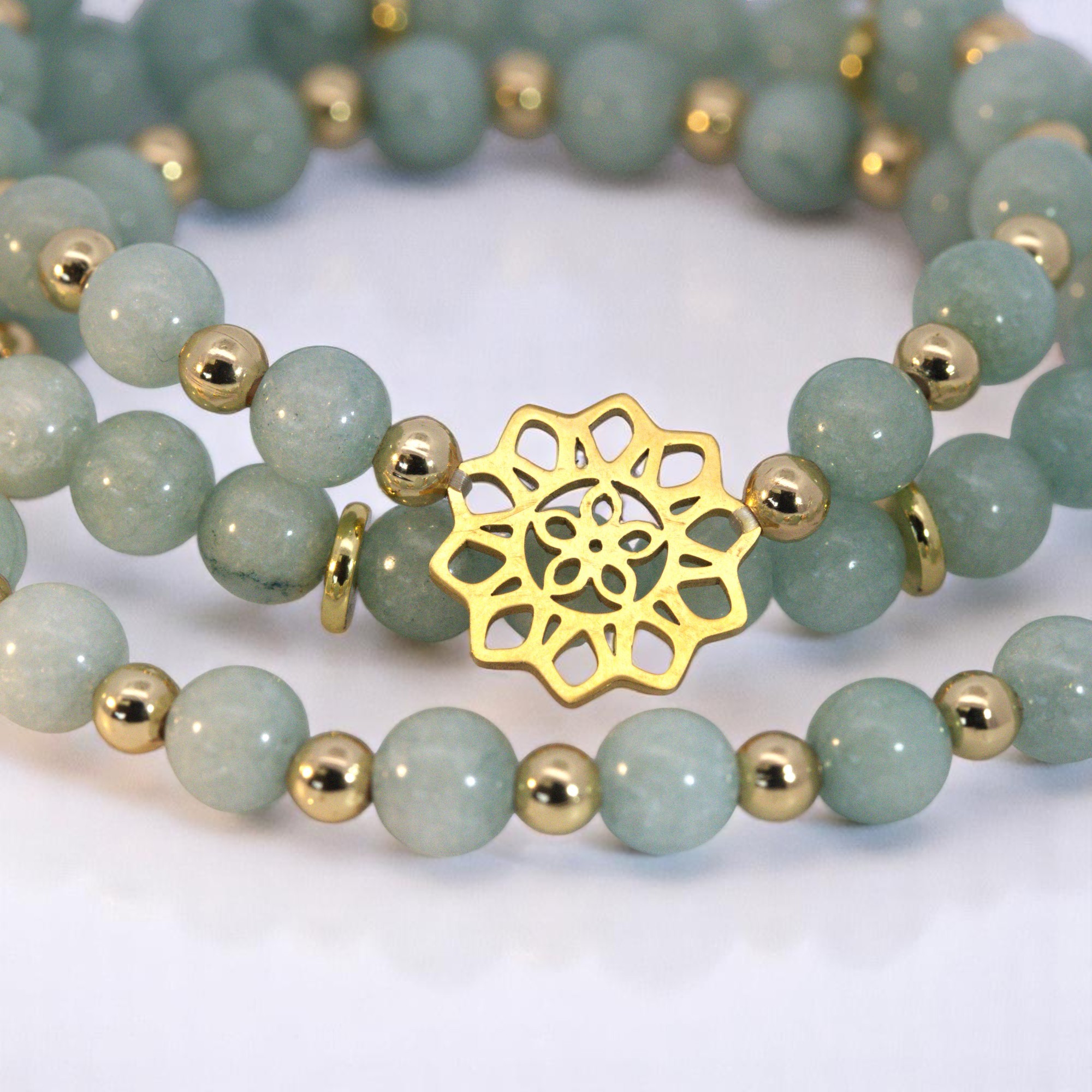 Inhalt: 2 Jadeperlenstränge, 1 elastisches Band, 9 Metallperlen S738604G, 1 Verbinder, 39 Metallperlen S66962G
