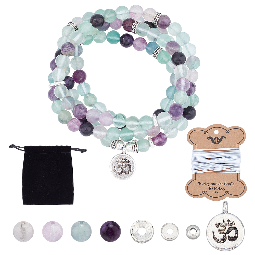 Bastelset lange Fluorit Perlenkette mit 8 mm Fluorit Perlen