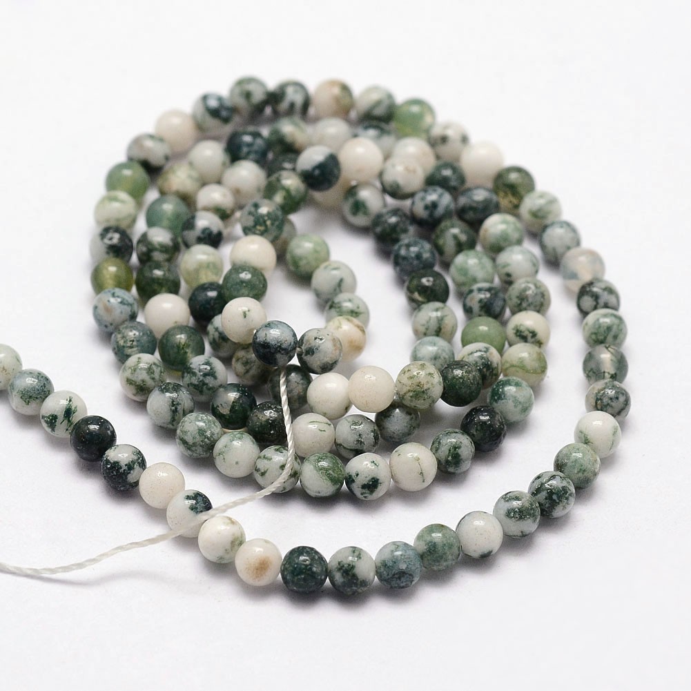 Produktinformationen "Baumachat Perlenstrang 3,4 - 3,5 mm (ca. 108 Perlen / ca. 38 cm Länge)"