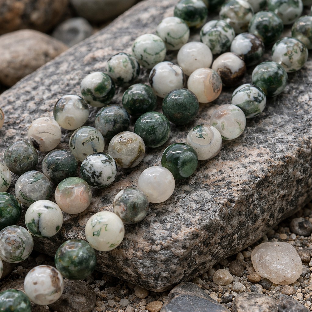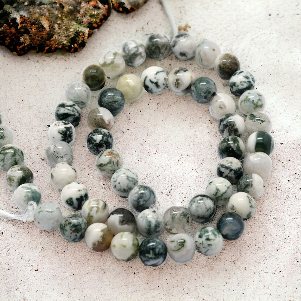 Produktinformationen "Baumachat Perlenstrang rund glatt glänzend 8 mm (ca. 45 Perlen / ca. 38 cm Länge)"
