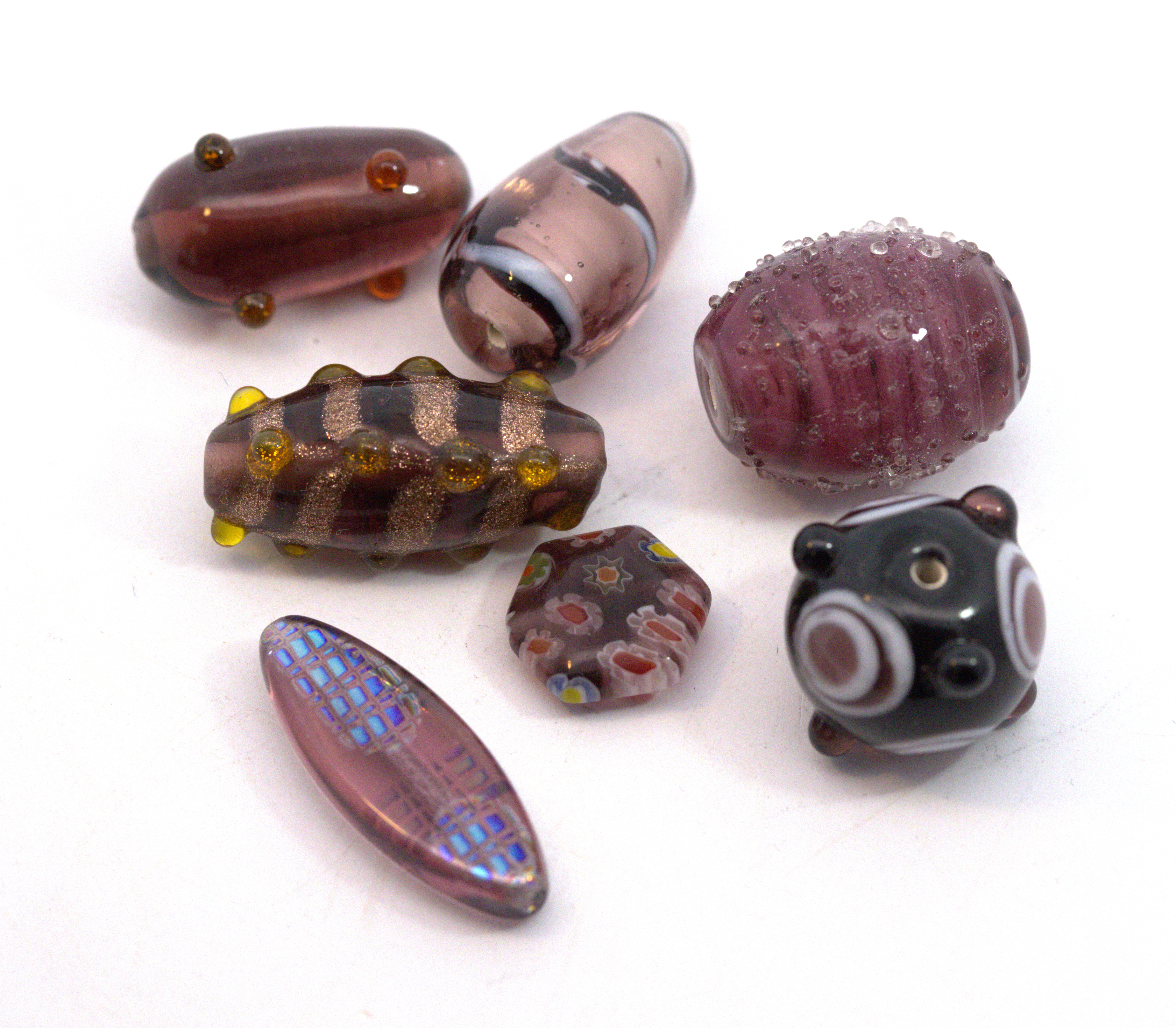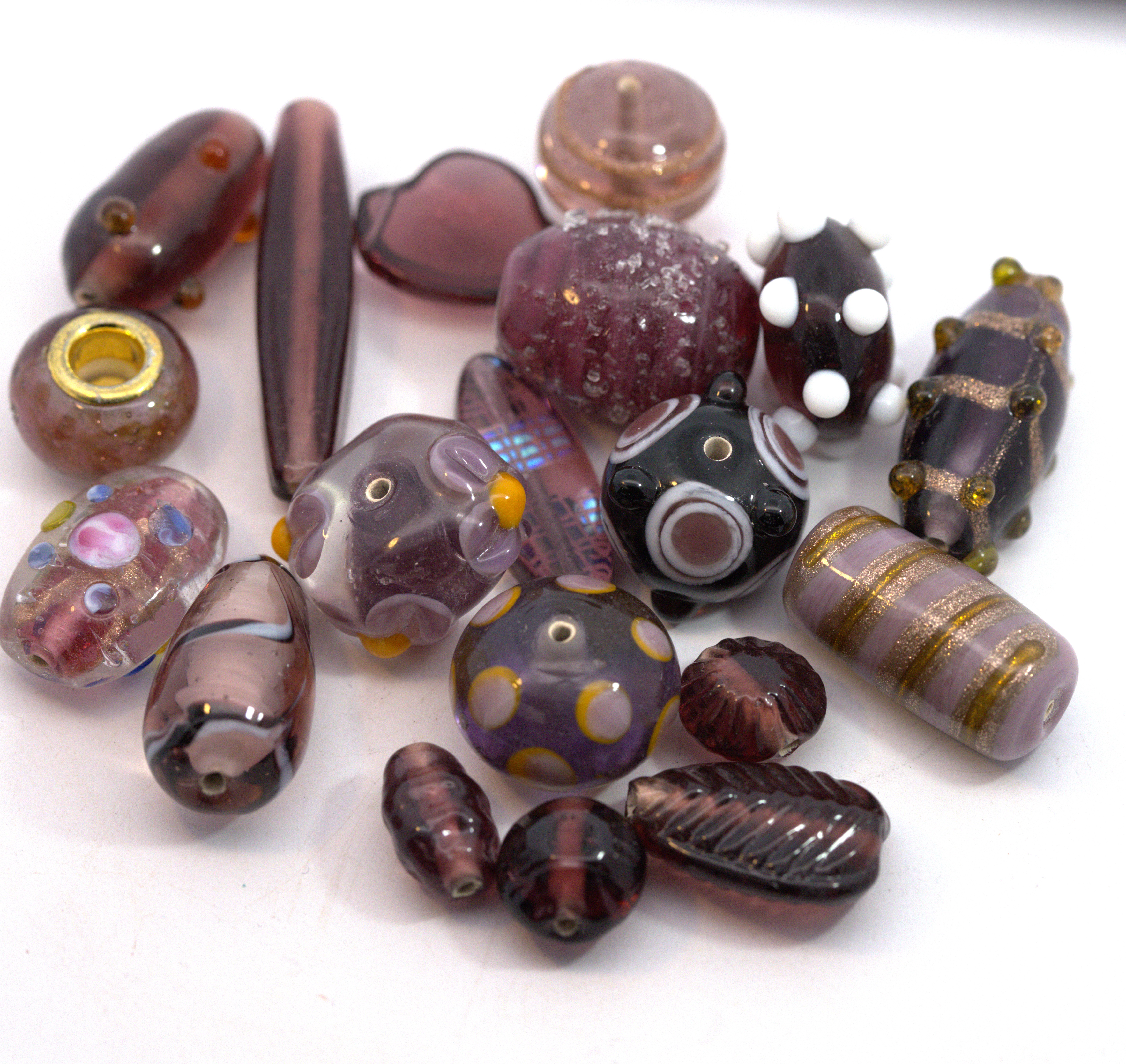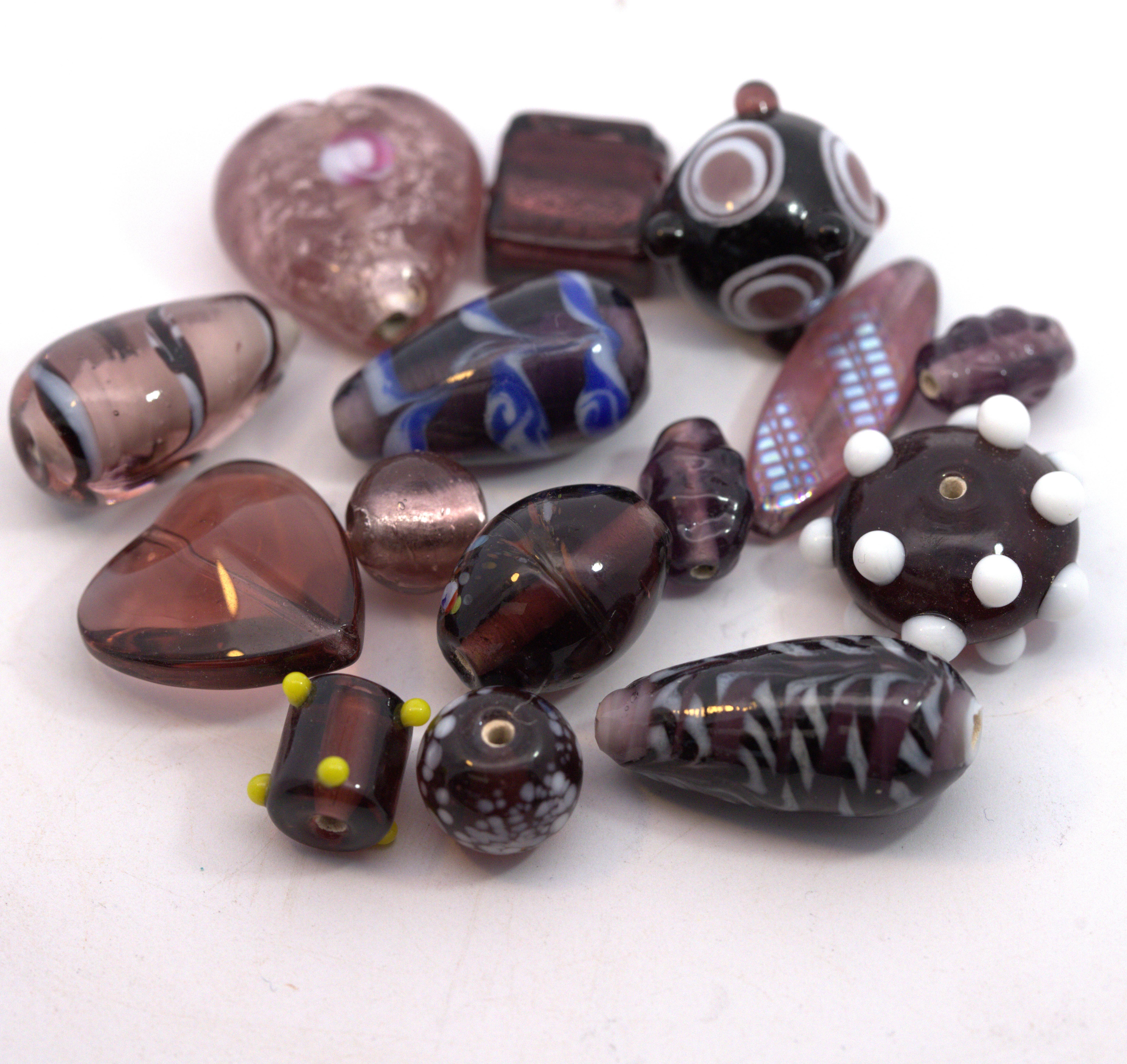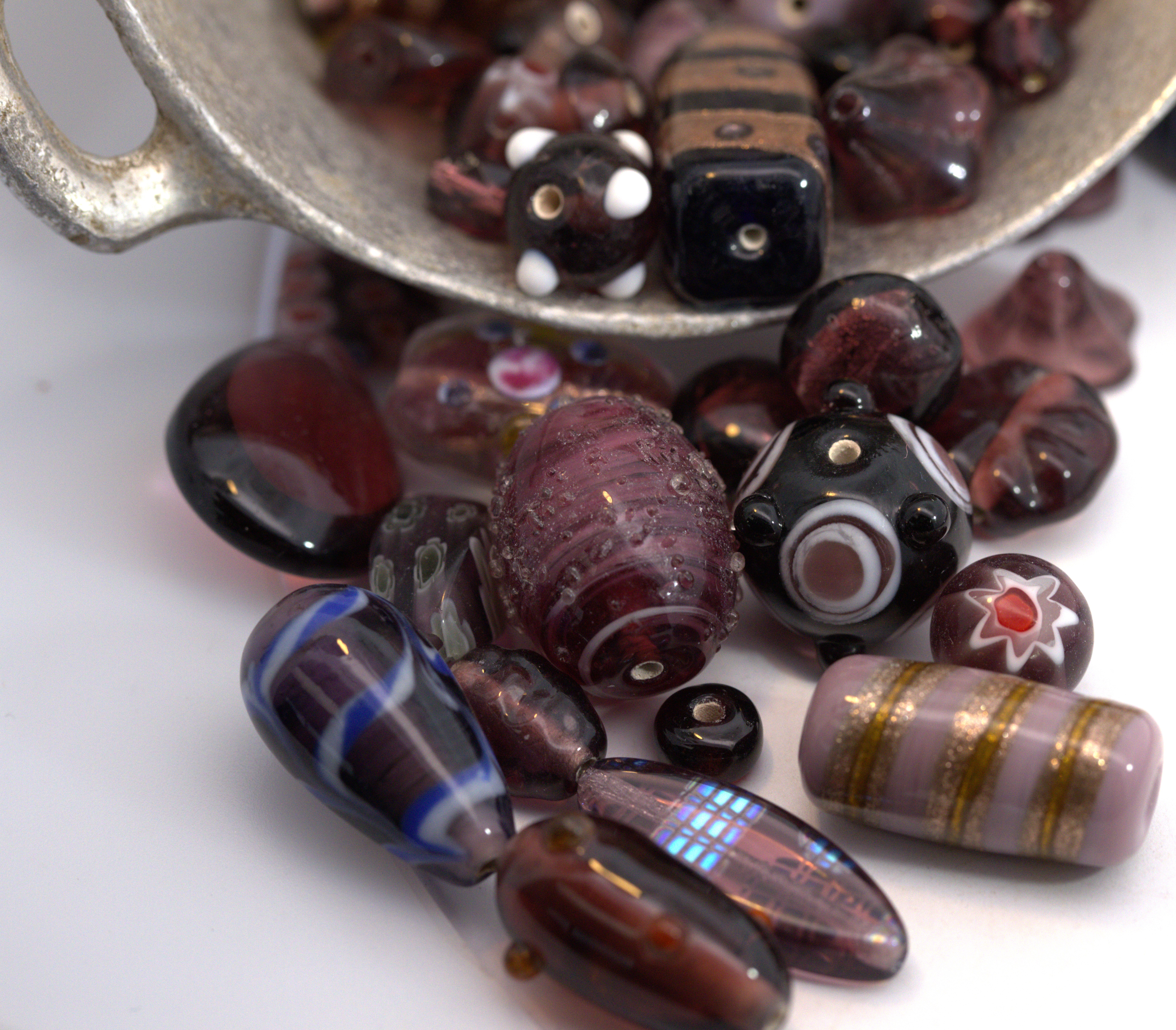 Produktinformationen "Böhmische Lampwork und Glasperlen 50 Gramm Überraschungsbeutel altrosa mit lila Anteilen"