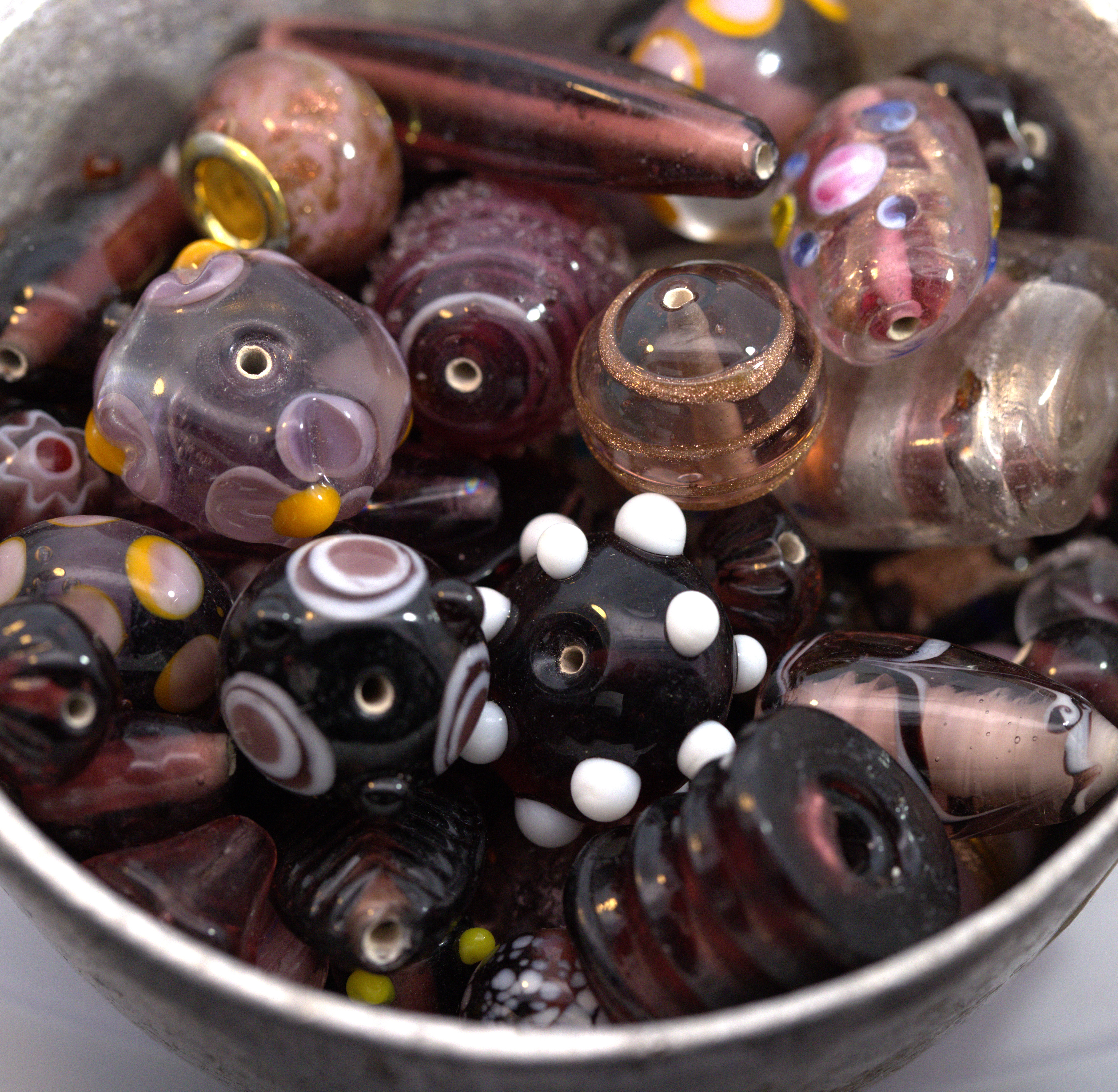 Böhmische Lampwork und Glasperlen 50 Gramm Überraschungsbeutel altrosa mit lila Anteilen