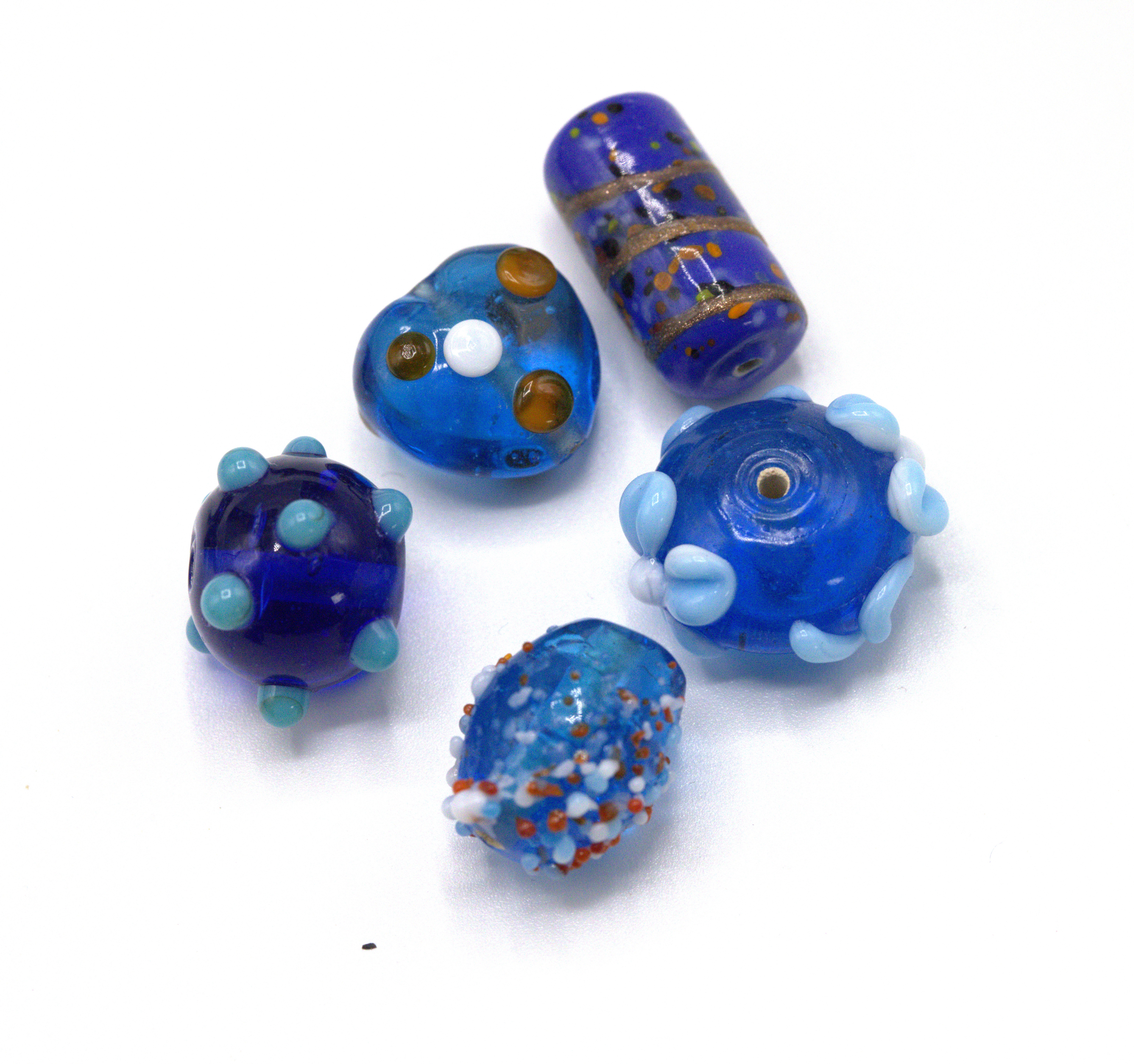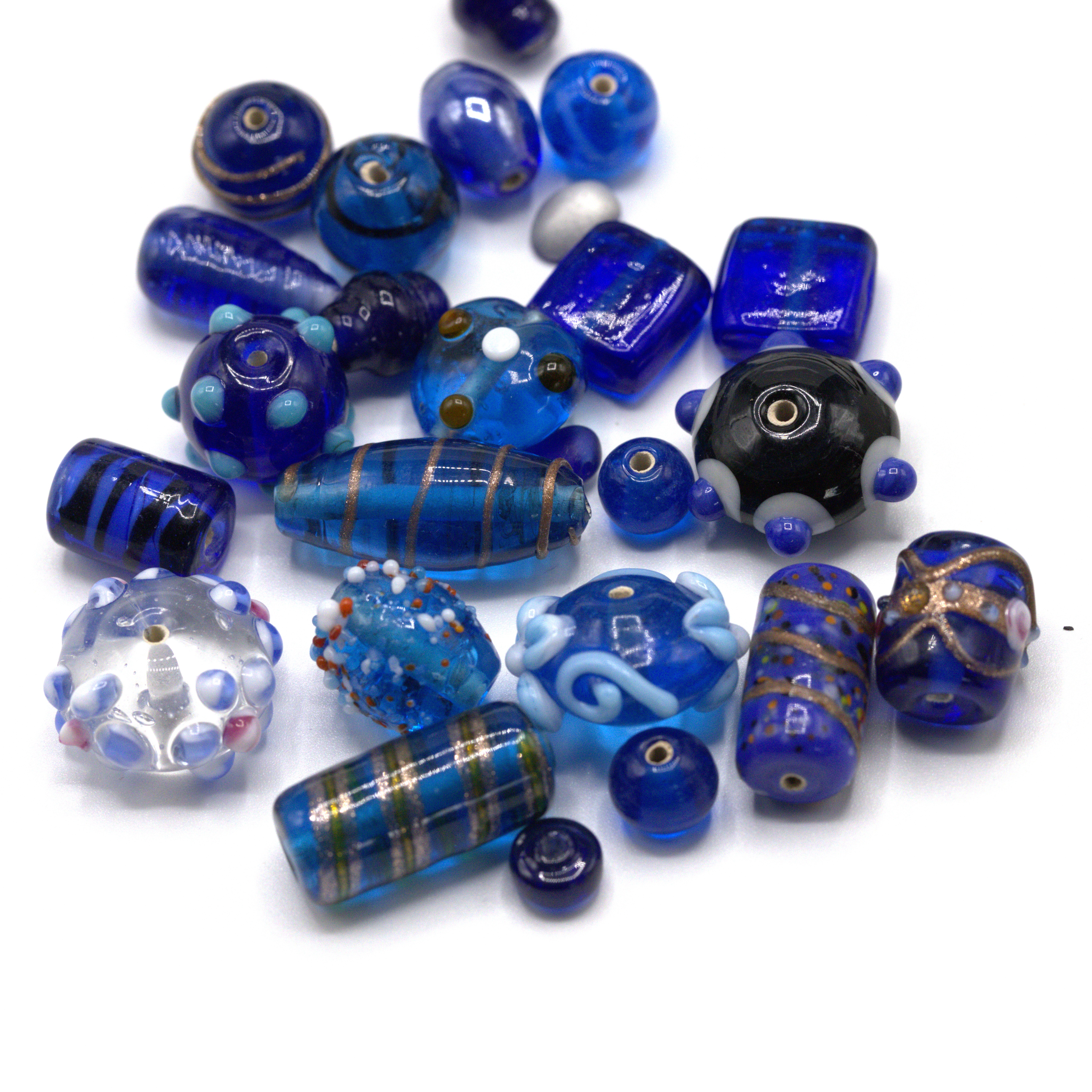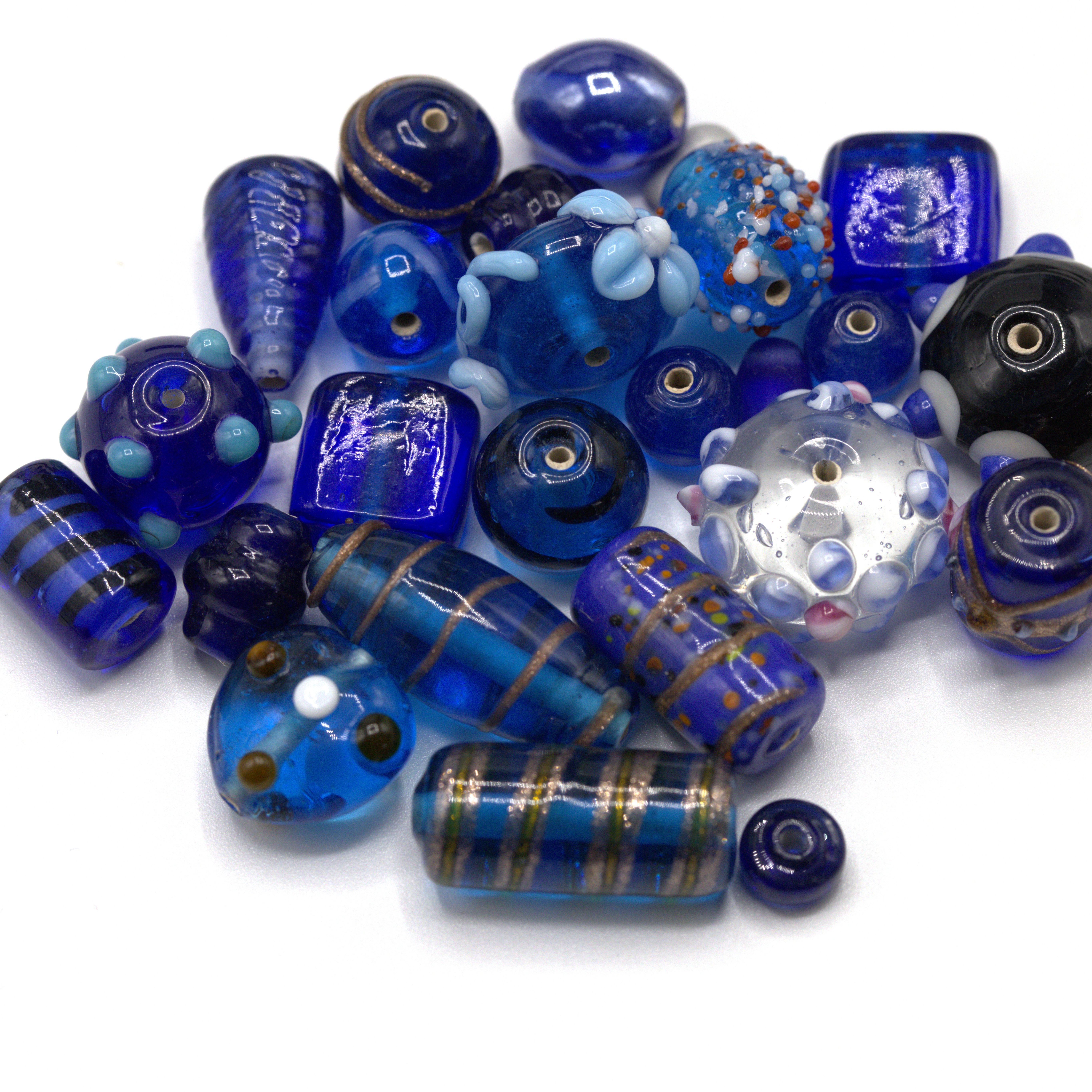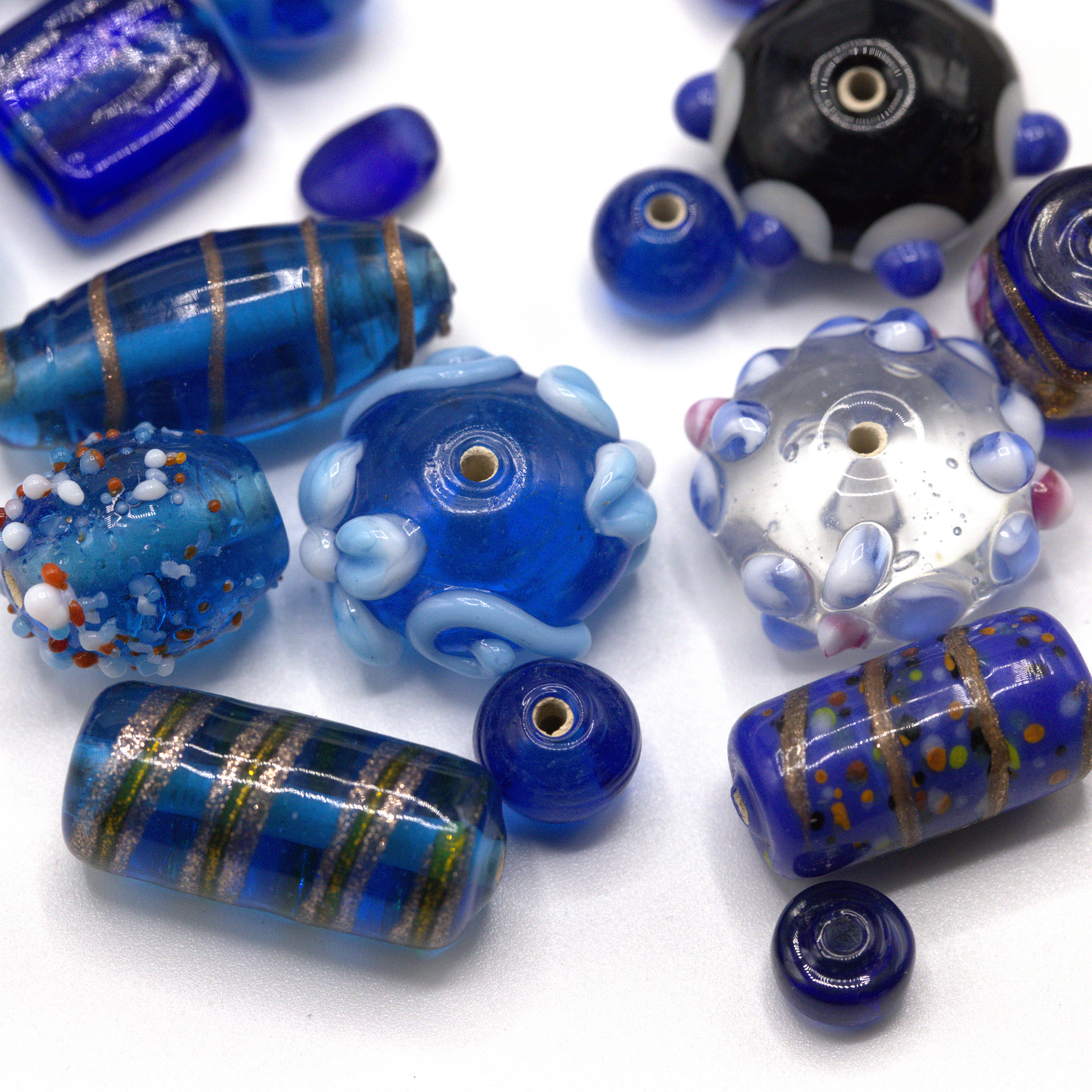 Böhmische Lampwork und Glasperlen 50 Gramm Überraschungsbeutel blau