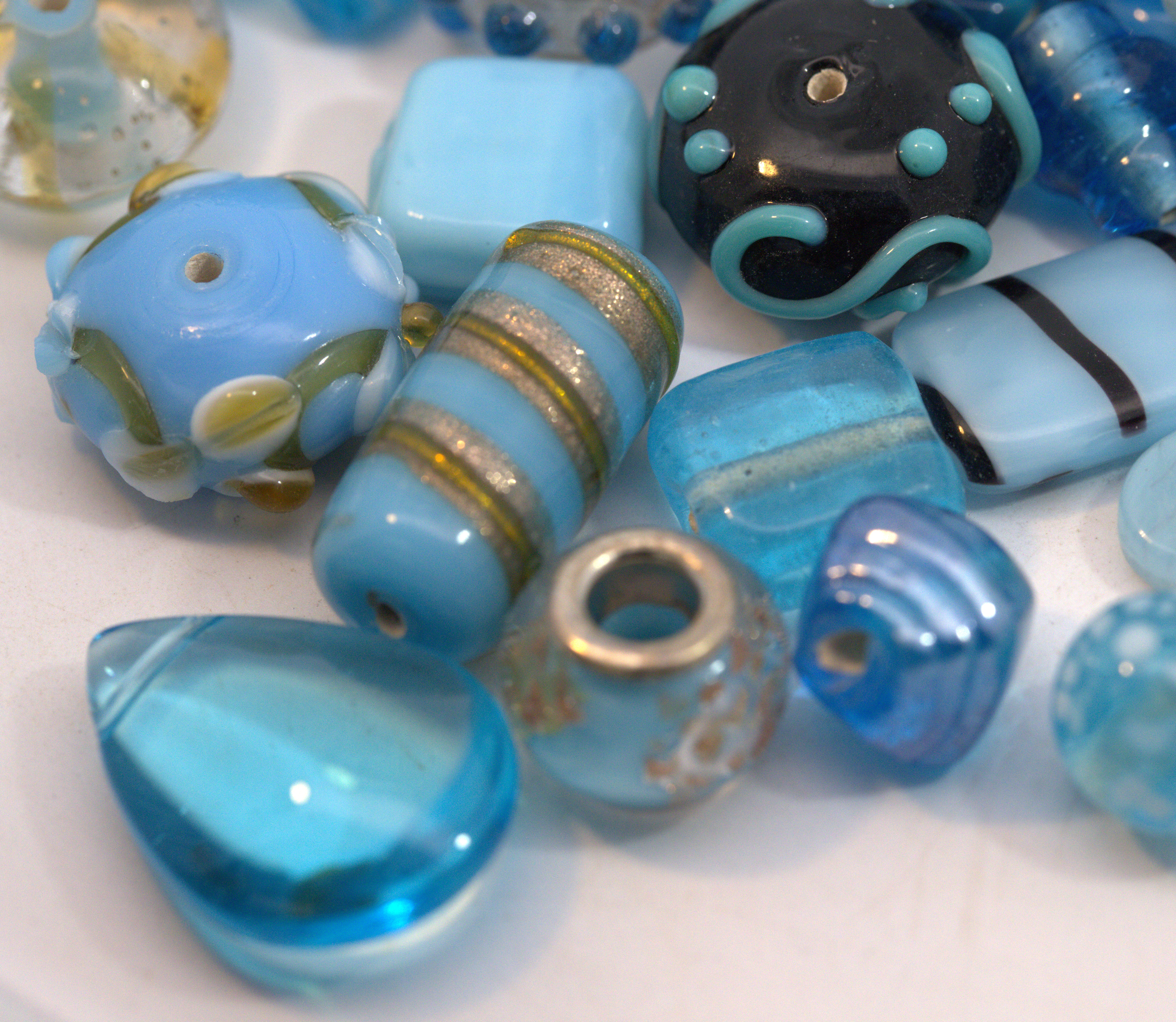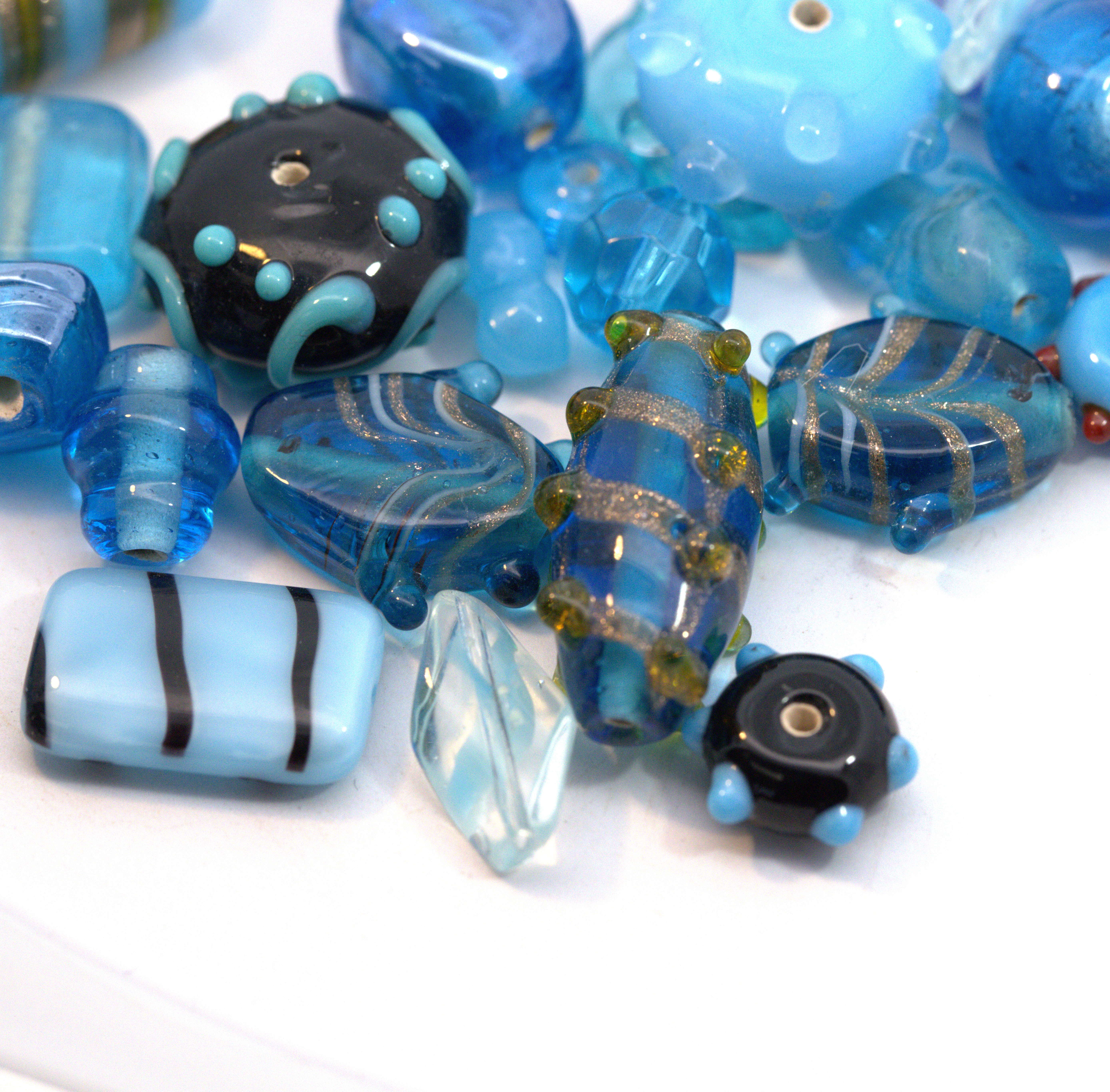 Böhmische Lampwork und Glasperlen 50 Gramm Überraschungsbeutel himmelblau