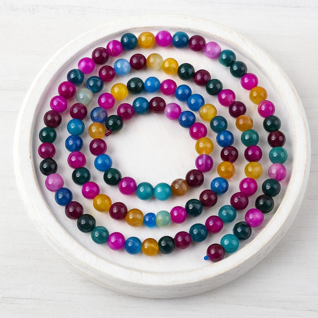 Produktinformationen "Bunter Bandachat Perlenstrang gefärbt 6 mm rund glatt glänzend (ca. 62 Perlen / ca. 37 cm Länge)"