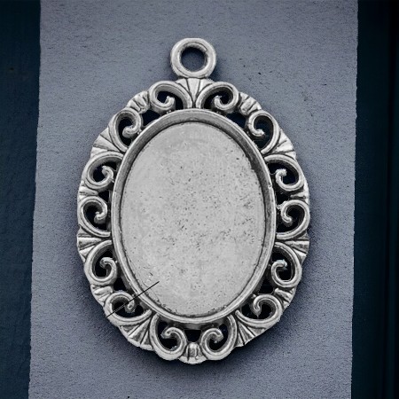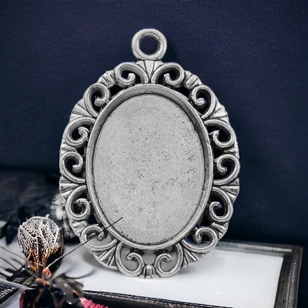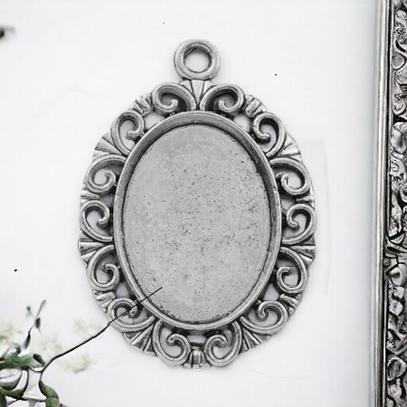Cabochon Anhänger aus Metall oval antik silberfarben 30 x 21 x 2 mm