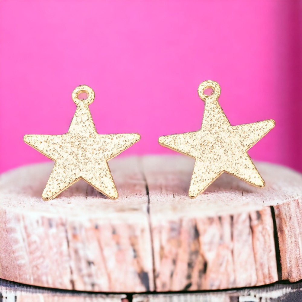 Charm Anhänger Stern 18k vergoldet mit strukturierter Oberfläche 15 x 13 x 0,5 mm