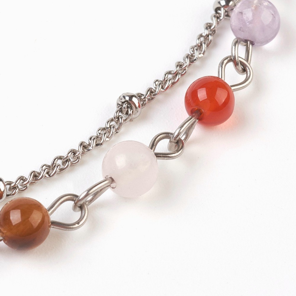 Edelstahl Chakra Halskette mit natürlichen und synthetischen Perlen 32 cm Länge & 6 cm Verlängerungskette