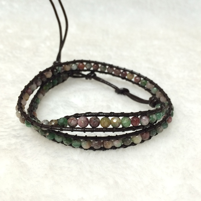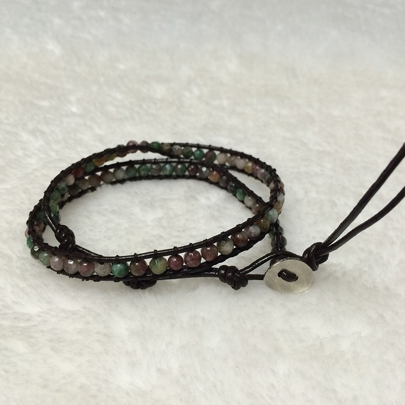 Produktinformationen "Doppelreihiges Achatperlen Armband mit Lederschnur und eingearbeiteten Achatperlen"