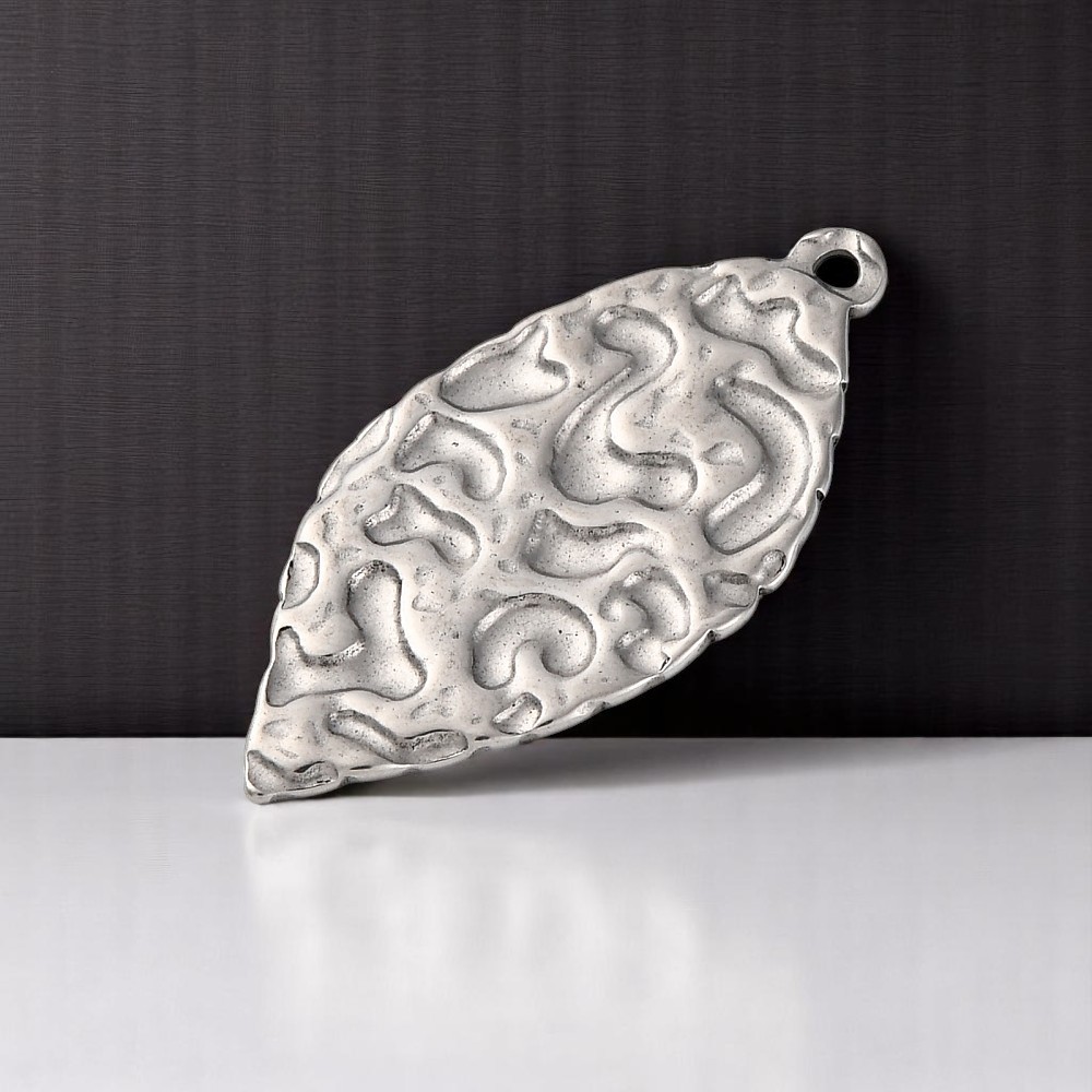 Edelstahl Anhänger strukturiertes Blatt 37 x 18 x 2 mm