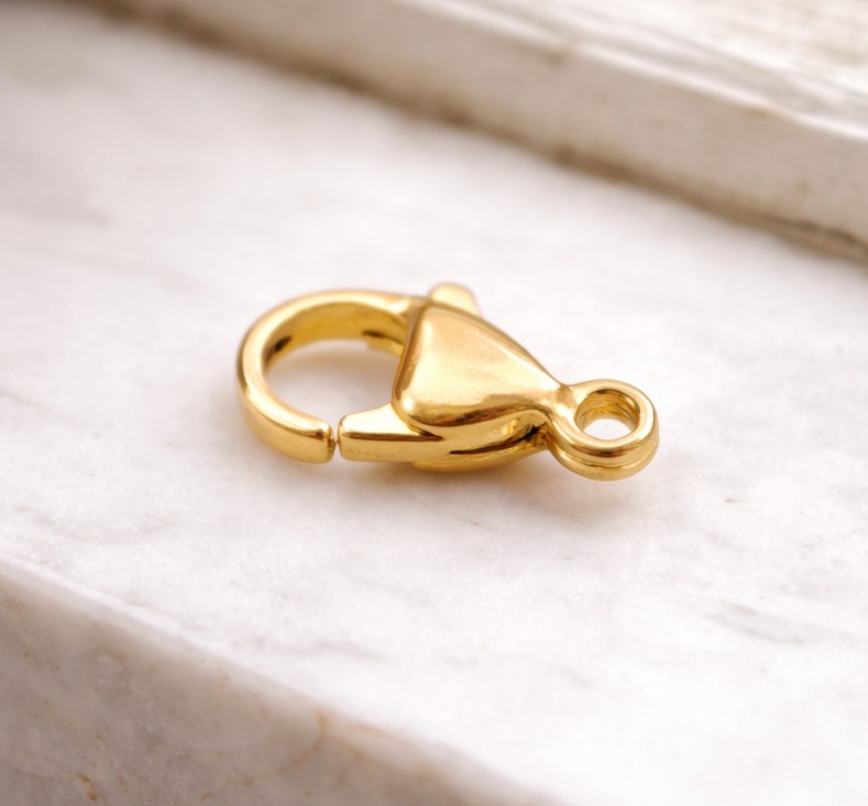 Edelstahl Karabinerverschluss 12 x 7 x 4 mm 24k vergoldet