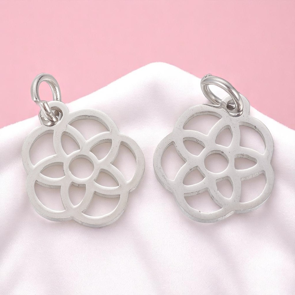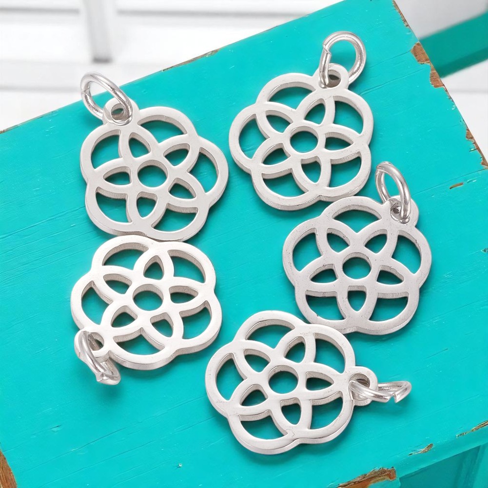 Edelstahlanhänger Blume des Lebens 13 x 12 x 1,1 mm mit Biegering