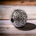 Eine 3-Loch-Guru Perle im tibetischen Stil rund antik silberfarben 9 x 9,5 mm