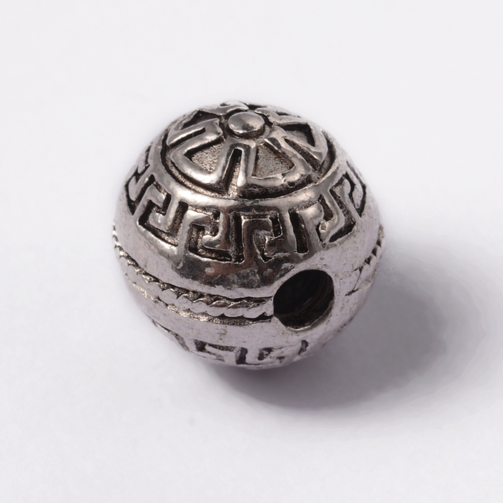 Diese Metallperle mit T-Bohrung eignet sich zur Herstellung von Buddha- oder Malaketten