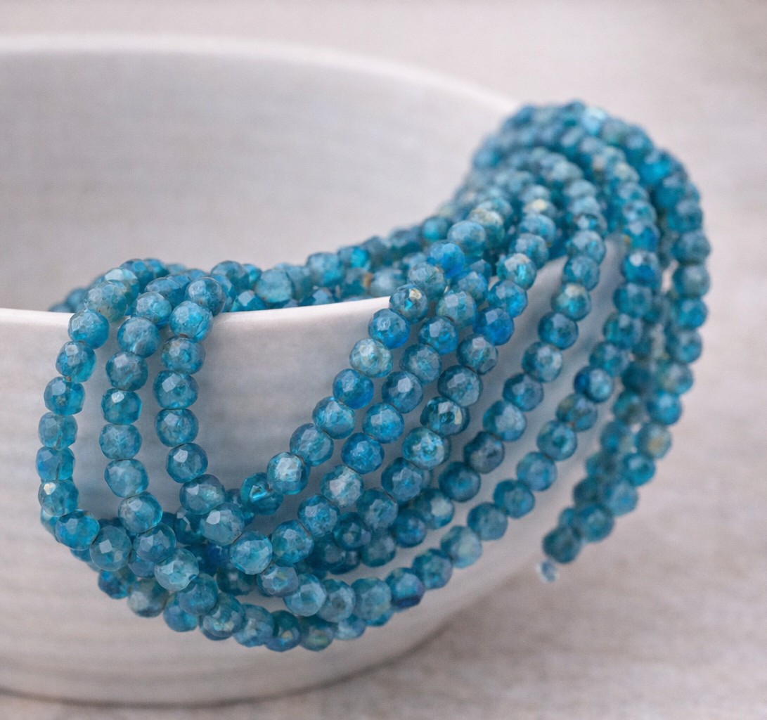 Produktinformationen "Facettierter Apatit Perlenstrang 3,3 mm (ca. 110 Perlen / ca. 38 cm Länge)"